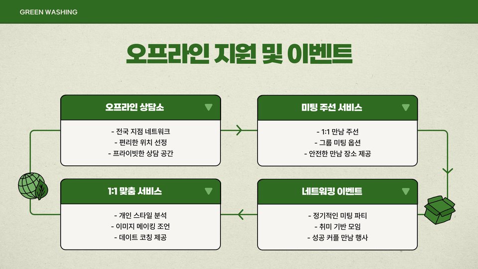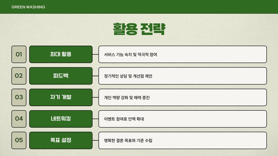 또한, 특정 취미나 관심사를 가진 사람들을 대상으로 하는 전문 업체도 존재하니, 자신이 중요하게 생각하는 요소에 부합하는 회사를 선택하십시오. 같은 관심사와 가치를 공유하는 사람들과의 매칭이 더 높은 성공률을 보입니다.