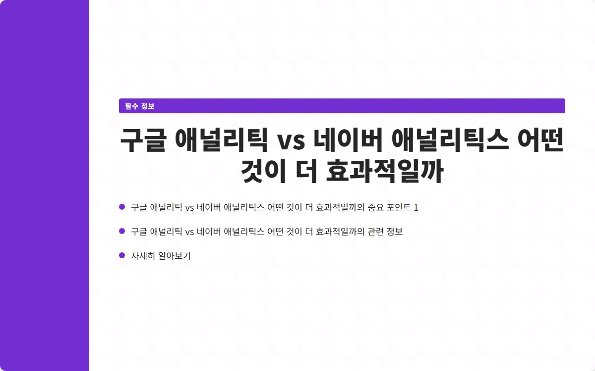 구글 애널리틱스와 네이버 애널리틱스 중 어떤 것을 선택해야 할까요? 블로그 운영자라면 반드시 고민해봐야 할 질문입니다. 두 플랫폼은 각각 장단점이 있어, 선택이 쉽지 않죠. 어떤 기능이 필요한지 파악하고, 그에 맞는 플랫폼을 선택하는 것이 중요합니다. 지금 확인해보세요!