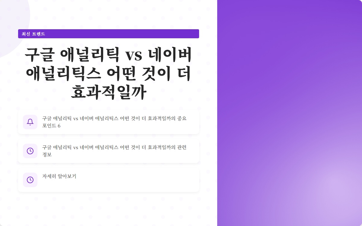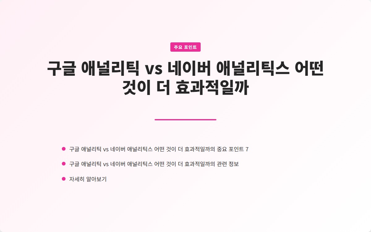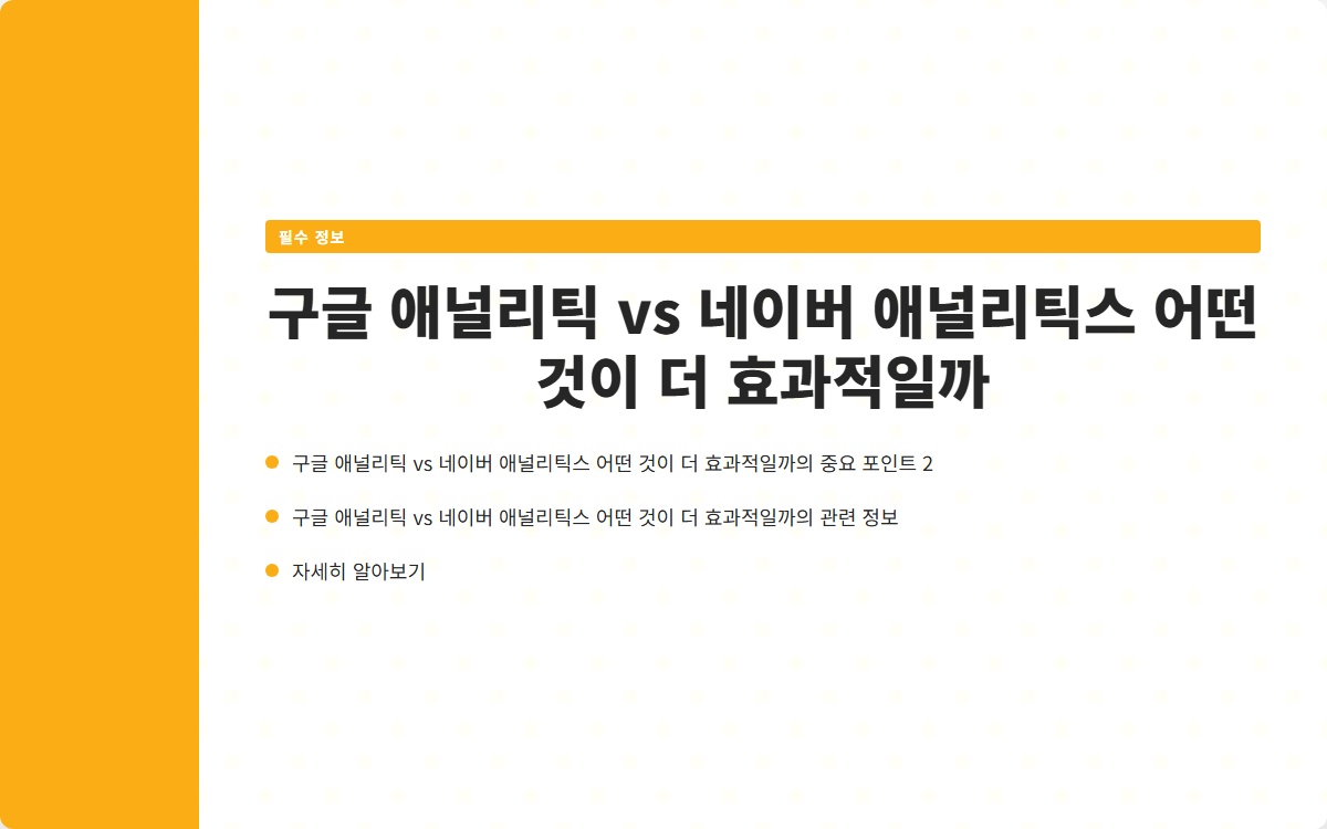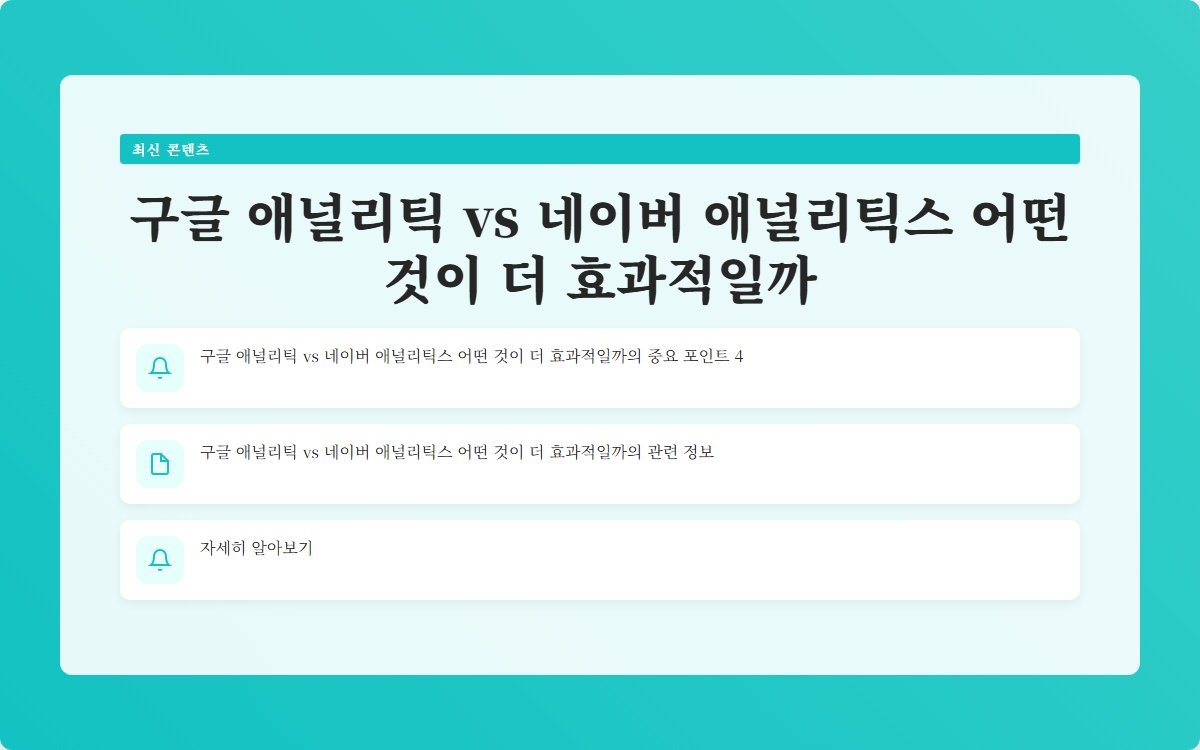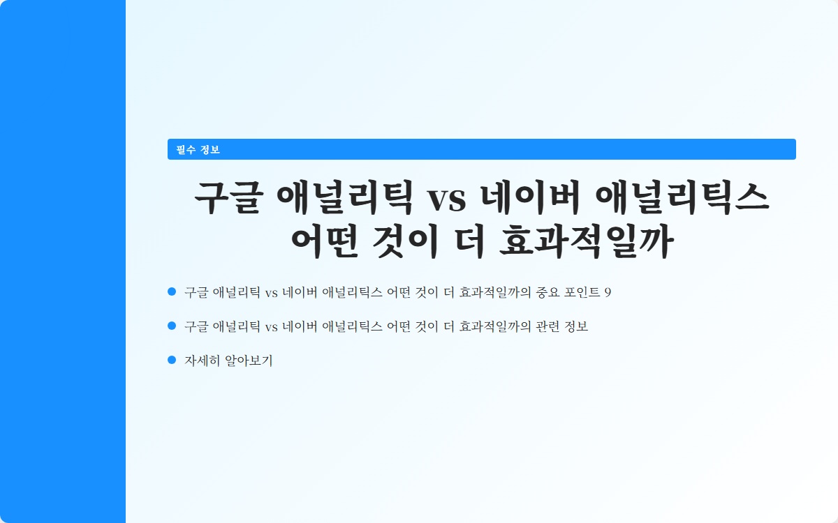 구글 애널리틱스와 네이버 애널리틱스 중 어떤 것을 선택해야 할까요? 블로그 운영자라면 반드시 고민해봐야 할 질문입니다. 두 플랫폼은 각각 장단점이 있어, 선택이 쉽지 않죠. 어떤 기능이 필요한지 파악하고, 그에 맞는 플랫폼을 선택하는 것이 중요합니다. 지금 확인해보세요!