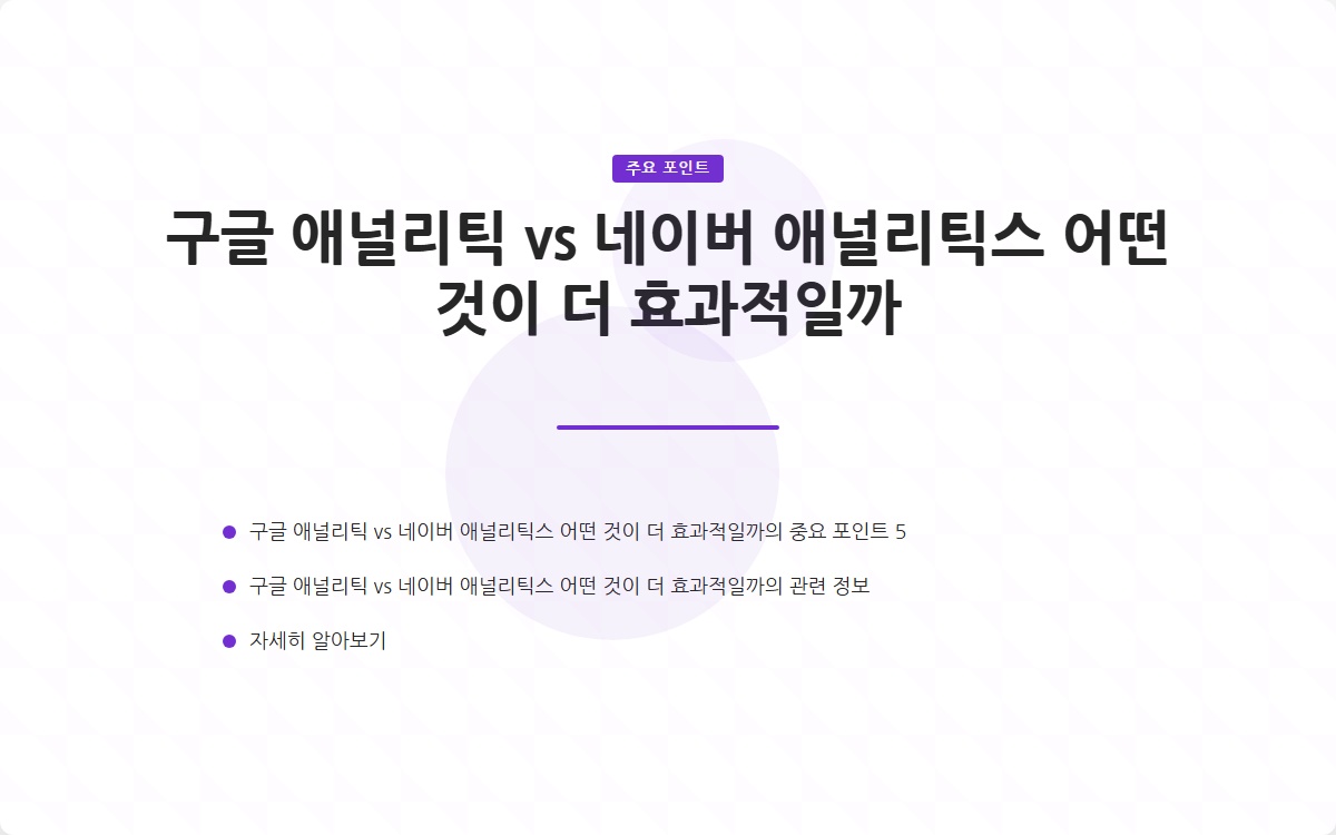 - 데이터 수집 방식: 구글 애널리틱스는 전 세계적인 데이터를 수집하는 반면, 네이버 애널리틱스는 한국 내 사용자 데이터를 중심으로 분석합니다.