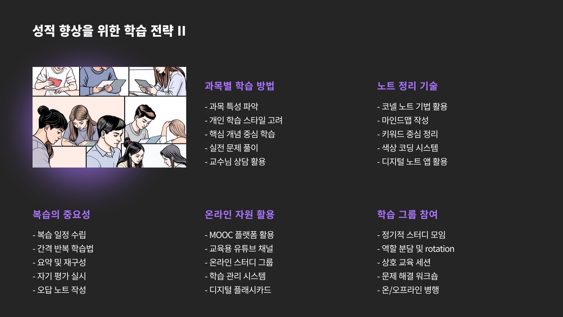 • 정기적인 자기 점검과 피드백을 통해 학습 방법을 개선한다.