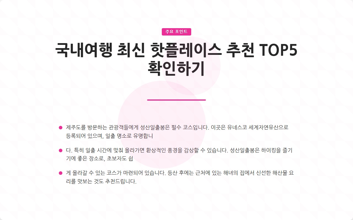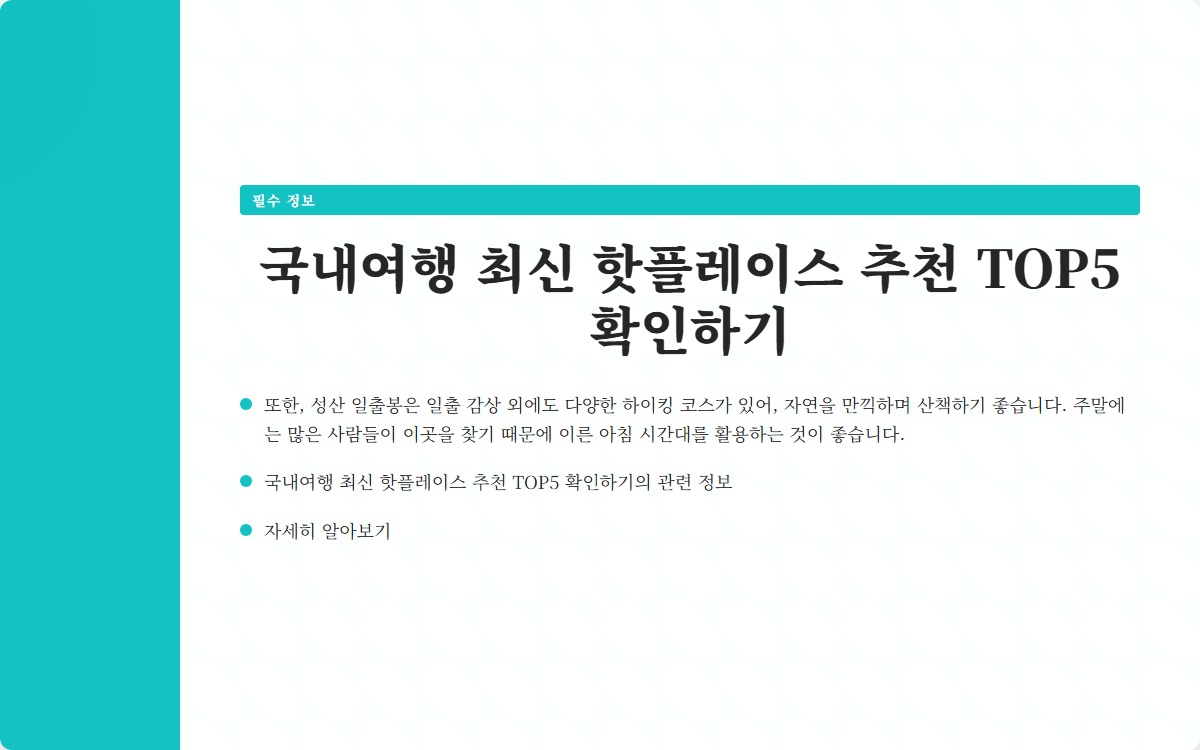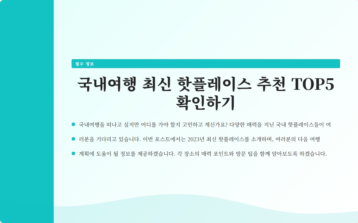 국내여행 최신 핫플레이스 추천 TOP5 확인하기