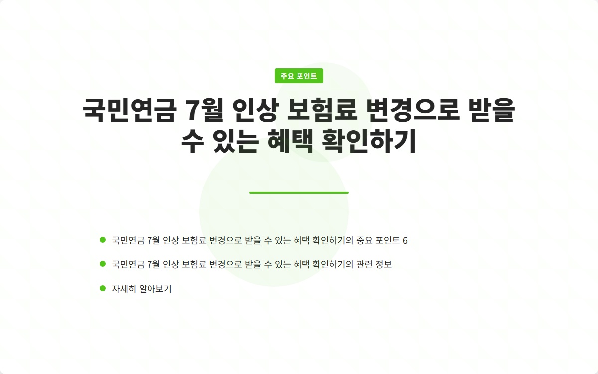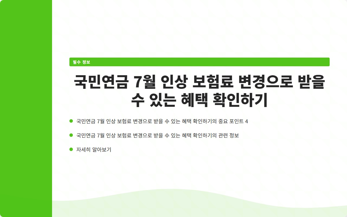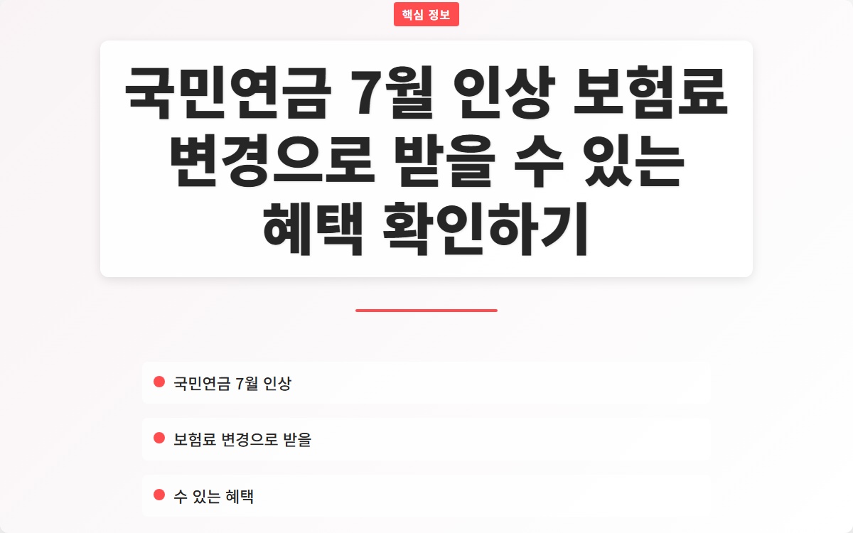 2025년 7월부터 국민연금 보험료가 인상됩니다. 이번 인상은 모든 가입자에게 영향을 미치며, 특히 고소득 가입자에게는 월 1만8000원의 추가 부담이 생깁니다. 이 변화가 여러분의 재정에 미칠 영향을 알고 계신가요? 지금 확인해보세요!