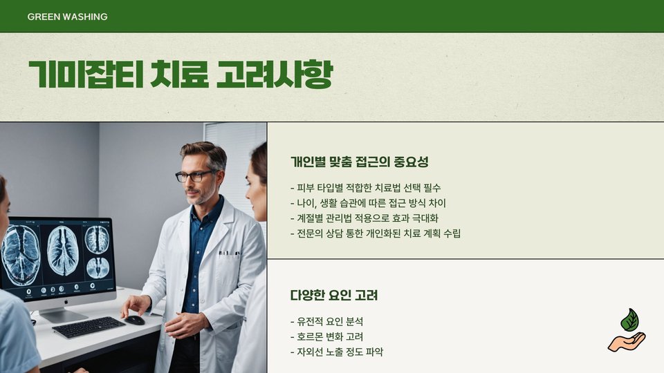 결론적으로, 기미잡티는 개인의 피부 상태에 따라 적절한 관리가 필요합니다. 최신 트렌드를 반영하더라도, 무엇보다 중요한 것은 개인의 피부 유형에 맞는 꾸준한 관리입니다. 이를 위해 전문가의 도움을 적극적으로 이용해 보시기 바랍니다.