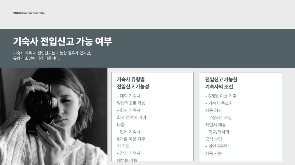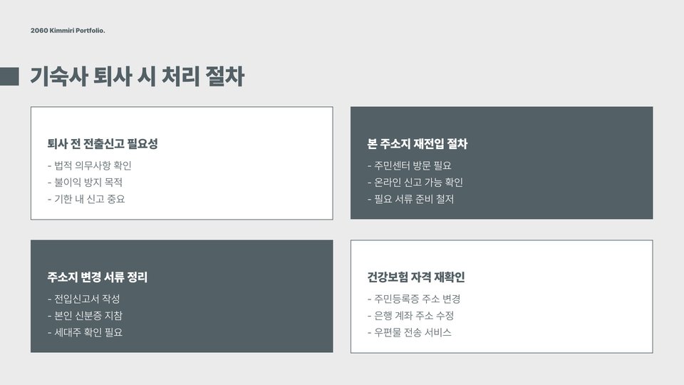 Tags: 기숙사, 전입신고, 주소 변경, 주민센터, 기숙사 규칙, 서류 준비, 입회 확인서, 신분증, 미성년자, 신고 절차