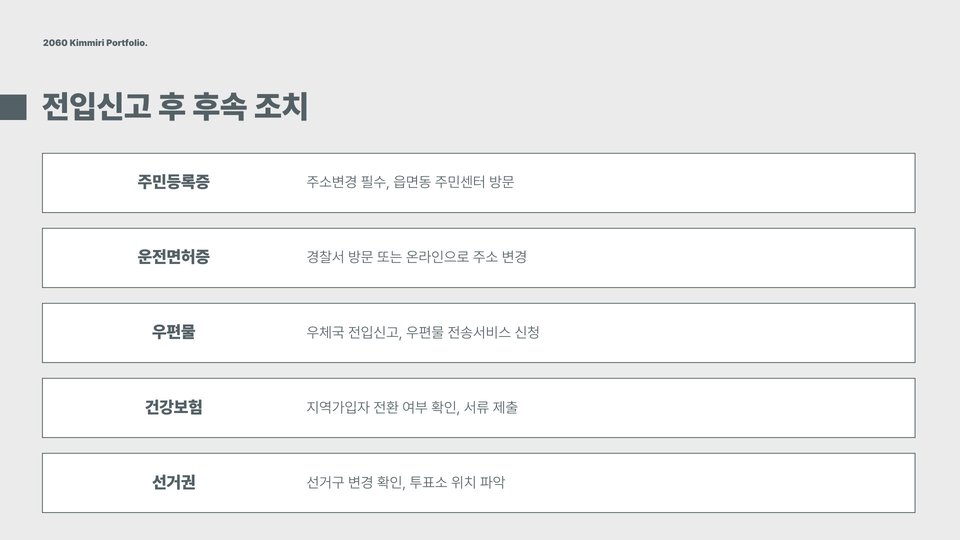 - 전입신고는 주거지 등록 및 행정 서비스 활용을 위해 필수적입니다.