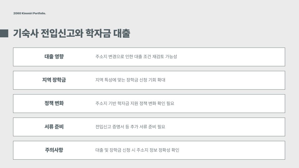 둘째, 전입신고를 통해 신분 확인 절차를 원활하게 할 수 있습니다. 기숙사 내에서 발생할 수 있는 문제에 대해 더욱 쉽게 해결할 수 있도록 도움을 줄 수 있습니다. 예를 들어, 기숙사에서의 사고나 문제 발생 시, 주거지 정보가 명확해야 관계자와의 소통이 수월해집니다.