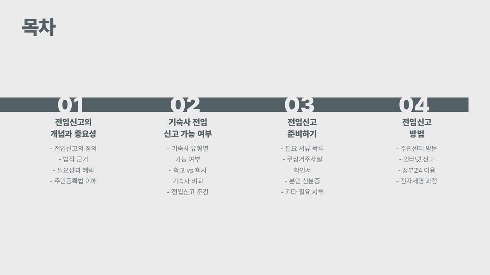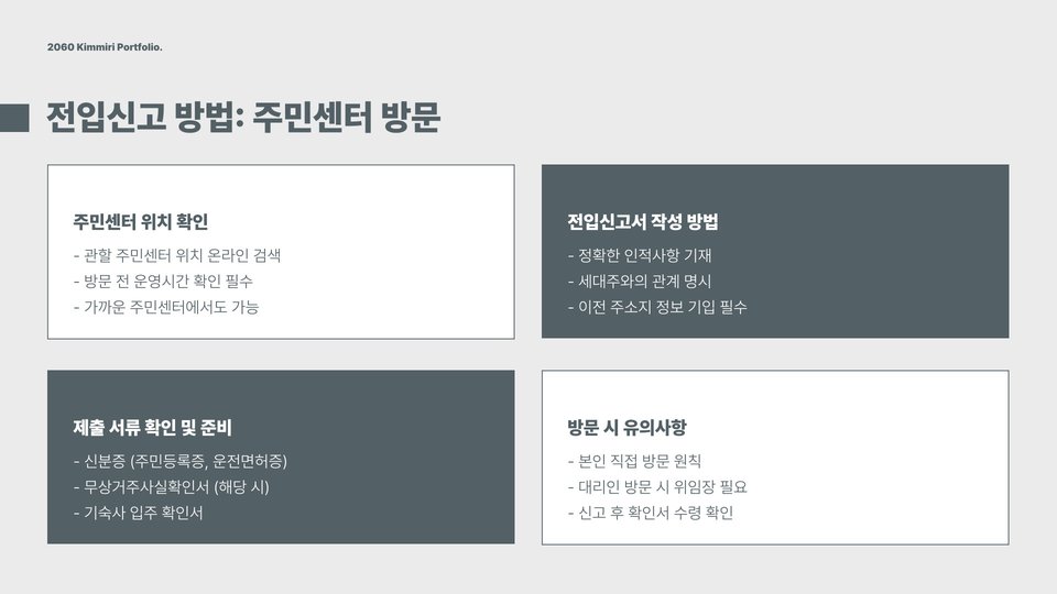 - 전입신고는 주거지 등록 및 행정 서비스 활용을 위해 필수적입니다.
