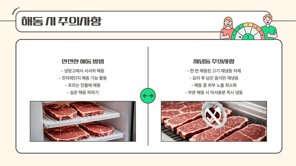 - 해동 시에는 냉장고에서 서서히 해동하는 것이 가장 안전하다.
