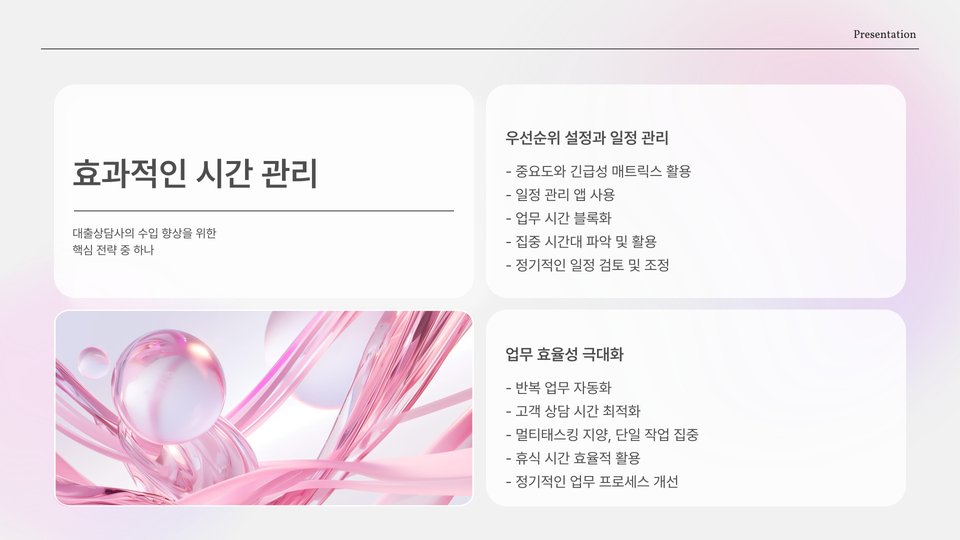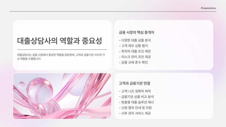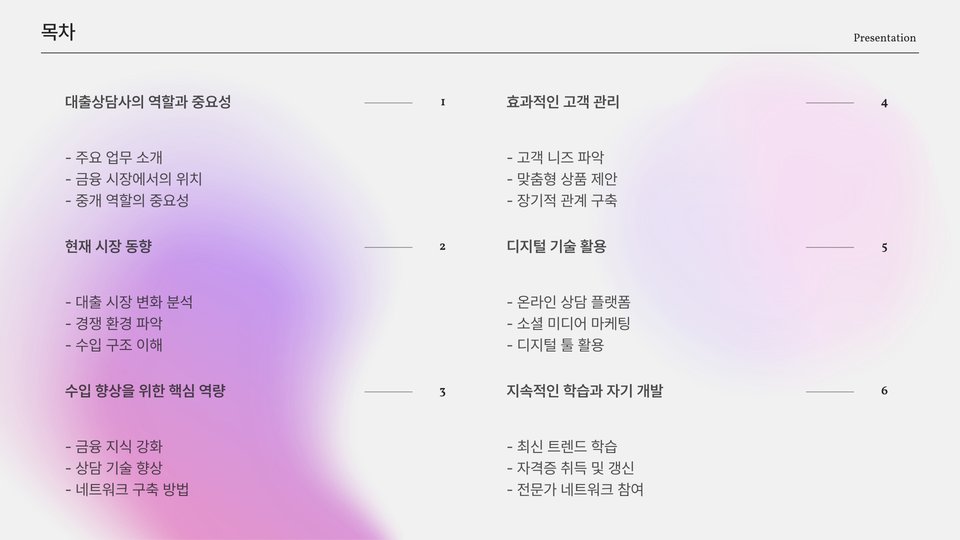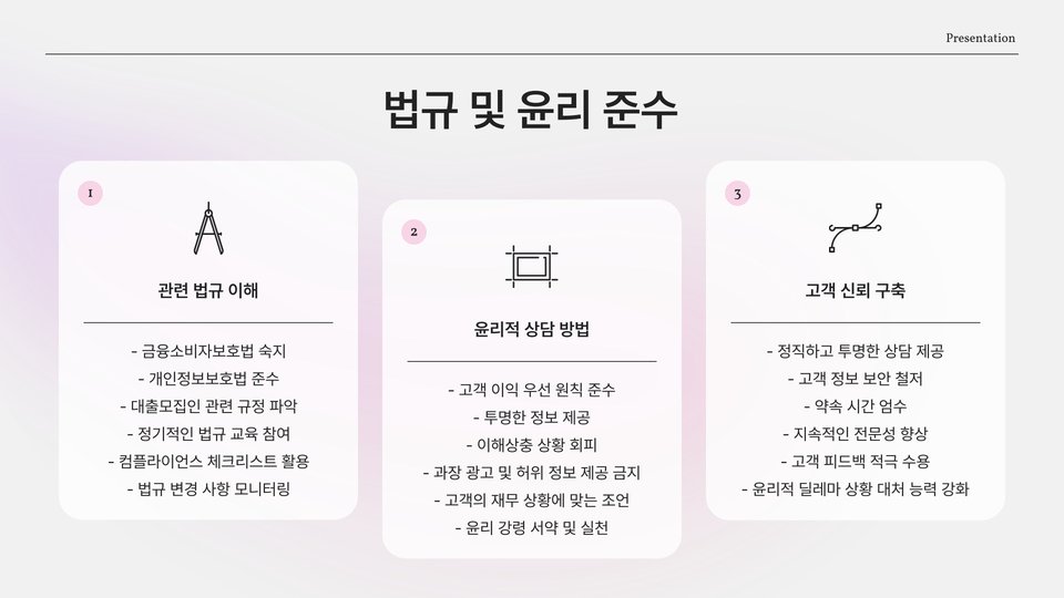대출 상담사는 고객이 적합한 대출 상품을 찾도록 도와주는 중요한 역할을 합니다. 고객의 재정 상태와 필요를 분석하고, 가장 적합한 옵션을 제시하는 것이 핵심입니다. 이 과정에서 고객의 신뢰를 얻는 것이 필수적입니다. 고객과의 신뢰 관계가 구축된다면, 자연스럽게 재구매율이 증가하고 추천 고객도 늘어날 것입니다.