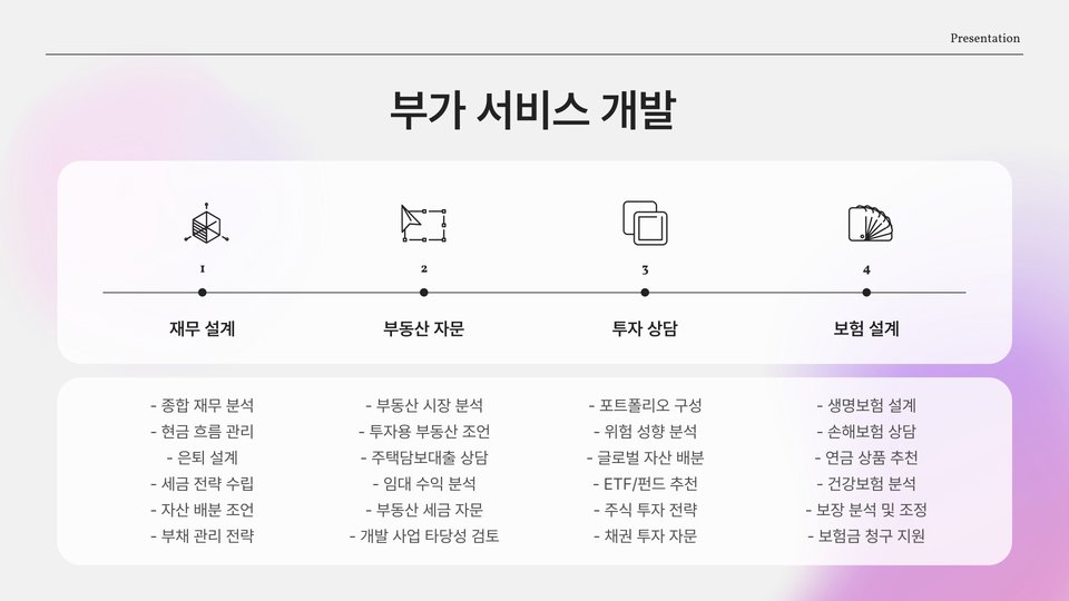 - 전문가 네트워크를 통한 고객 유치