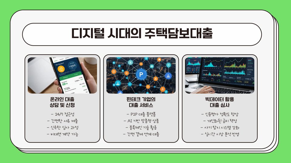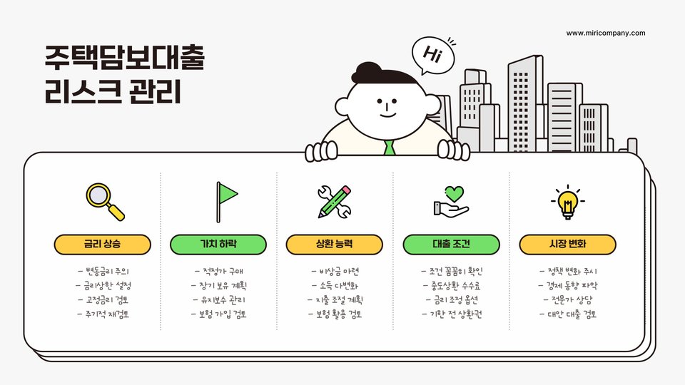 중요 포인트: 주택담보대출을 이용할 때는 담보로 설정한 주택에 대한 이해가 필요하며, 만약 상환 불능 상태가 발생할 경우 주택을 잃을 위험이 있음에 유의해야 합니다.