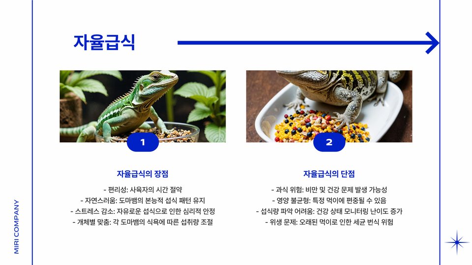 마지막으로, 도마뱀의 식사에서는 주기적으로 다양한 식단을 제공함으로써 그들의 호기심과 식욕을 자극하는 것이 좋습니다. 새로운 음식을 시도하면서 도마뱀의 반응을观察해보면, 가장 좋아하는 음식을 찾는 즐거움도 누릴 수 있습니다.