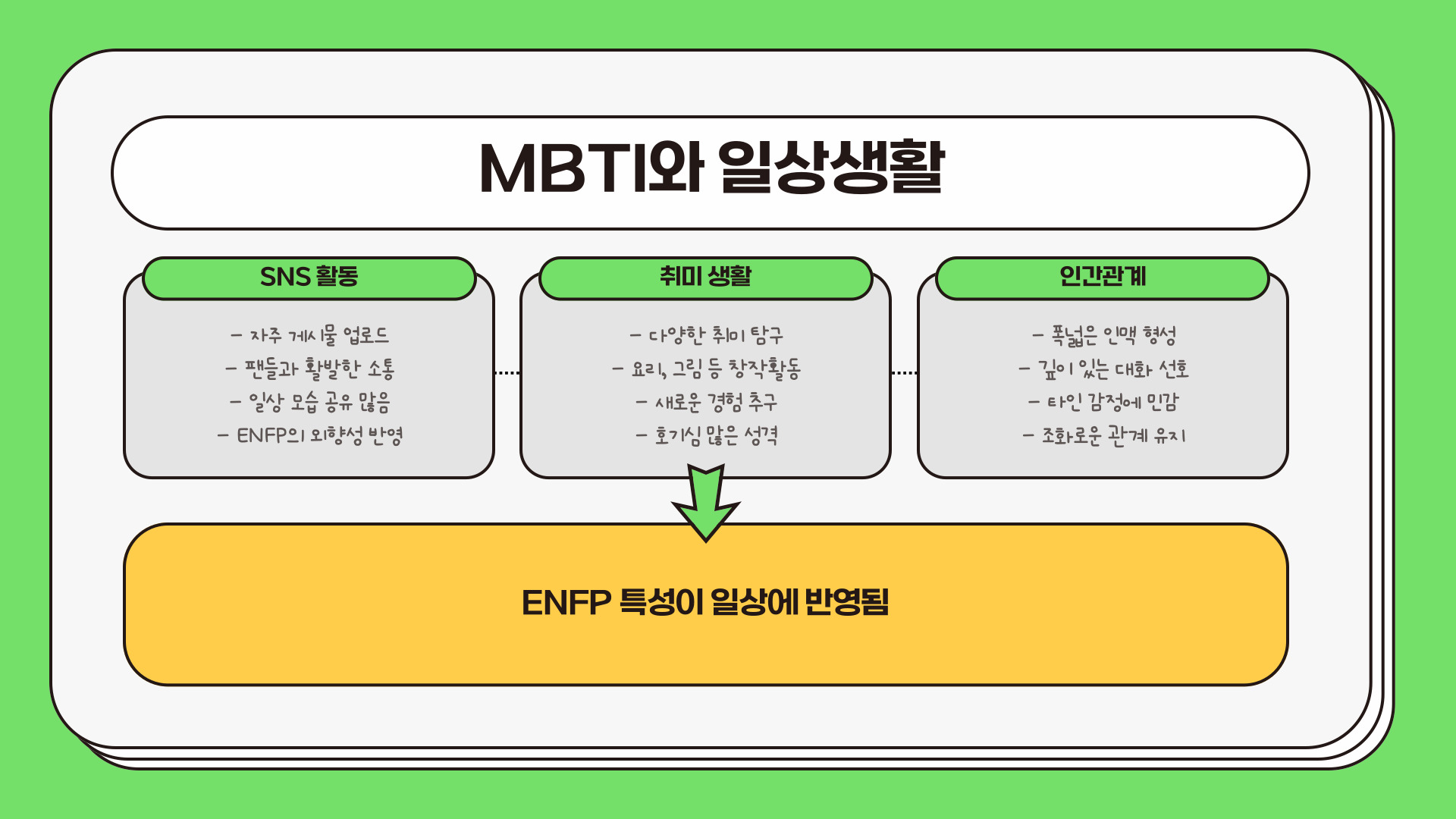 실제로 MBTI를 활용해 사람들과의 관계를 개선하거나, 자신과 잘 맞는 직업을 찾아보는 것도 좋은 시도입니다.