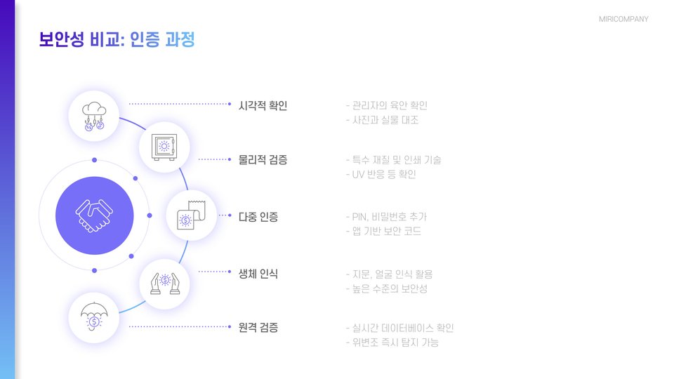 | 보안성 | 높음 (생체인식, 암호화) | 상대적으로 낮음 (위조 가능성) |