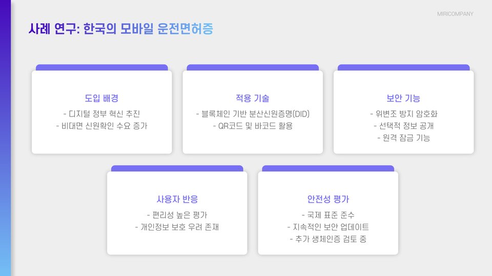 모바일 신분증 | 휴대성, 높은 보안, 즉각적인 업데이트 | 기술 의존성, 접근 장애 발생 가능성 |