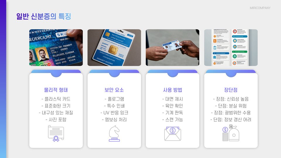 | 종이 신분증 | 형식의 명확성, 비대칭적 사용 가능, 물리적 존재 | 분실 시 어려움, 관리 번거로움 |