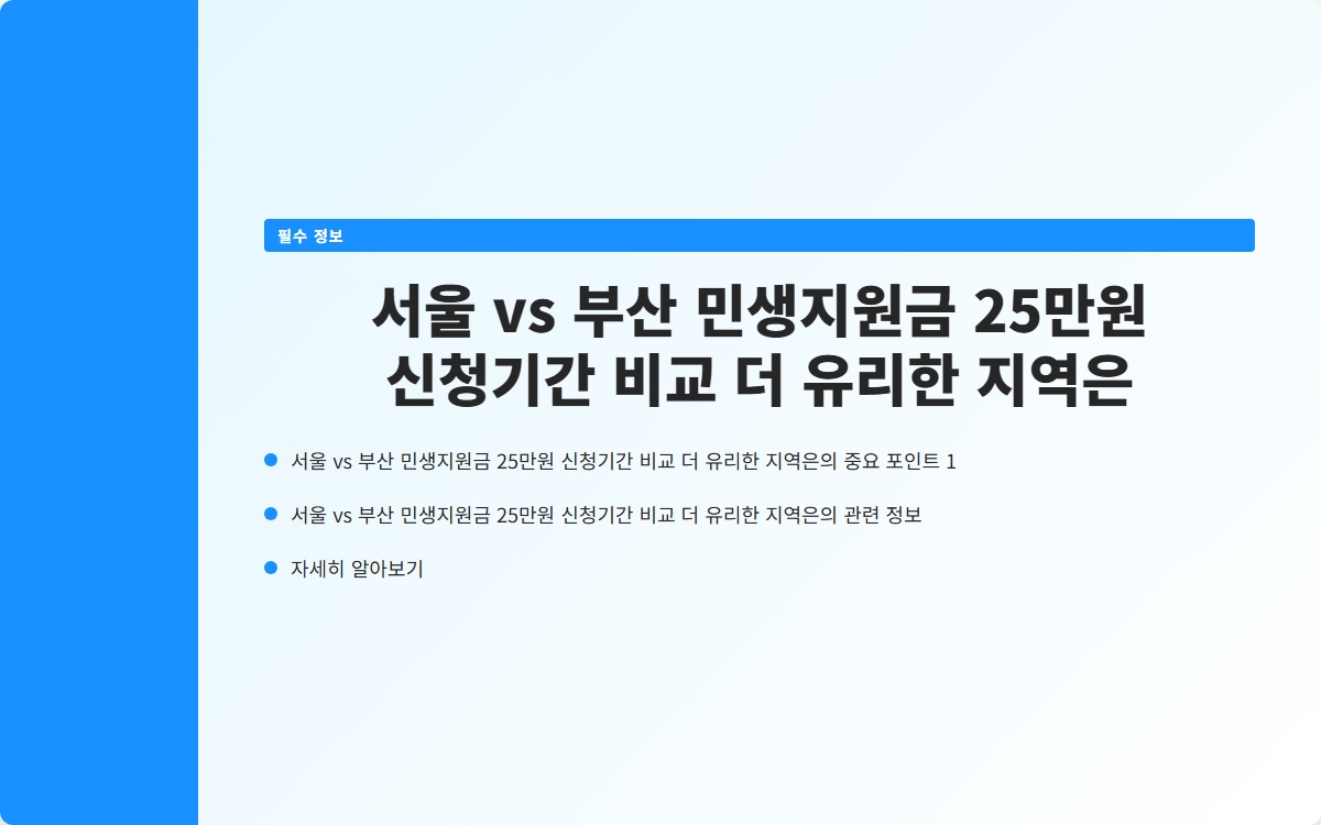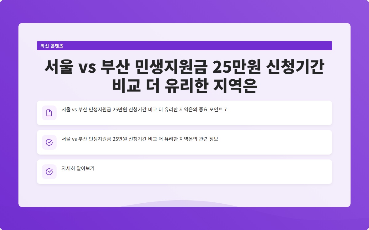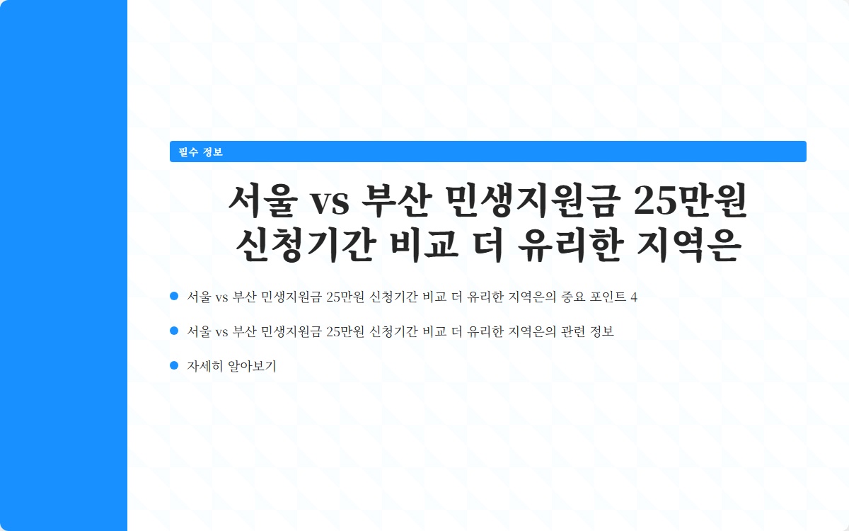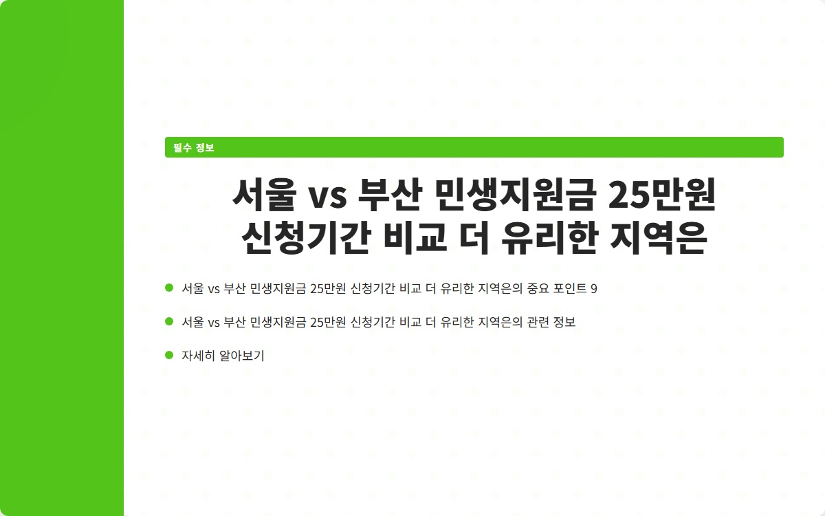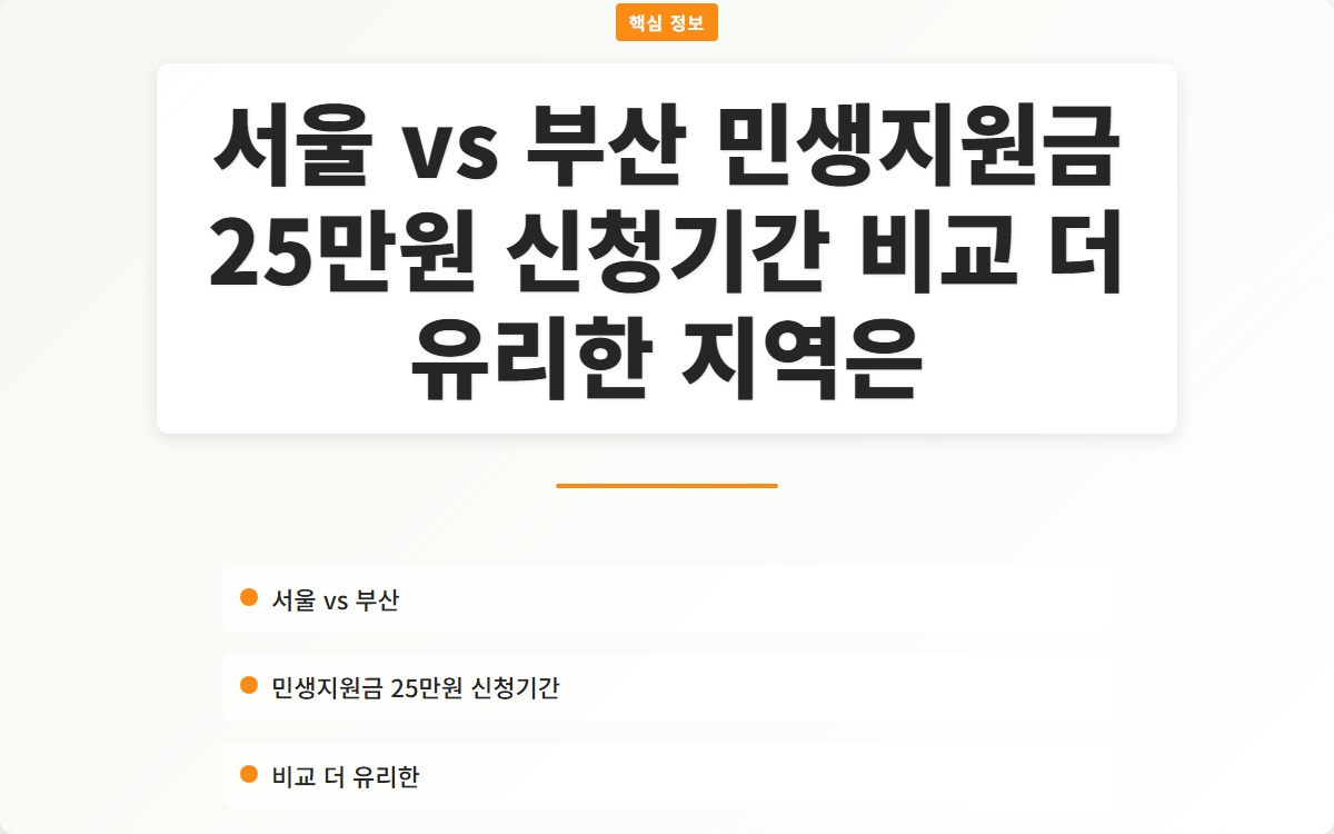 서울 vs 부산 민생지원금 25만원 신청기간 비교 더 유리한 지역은