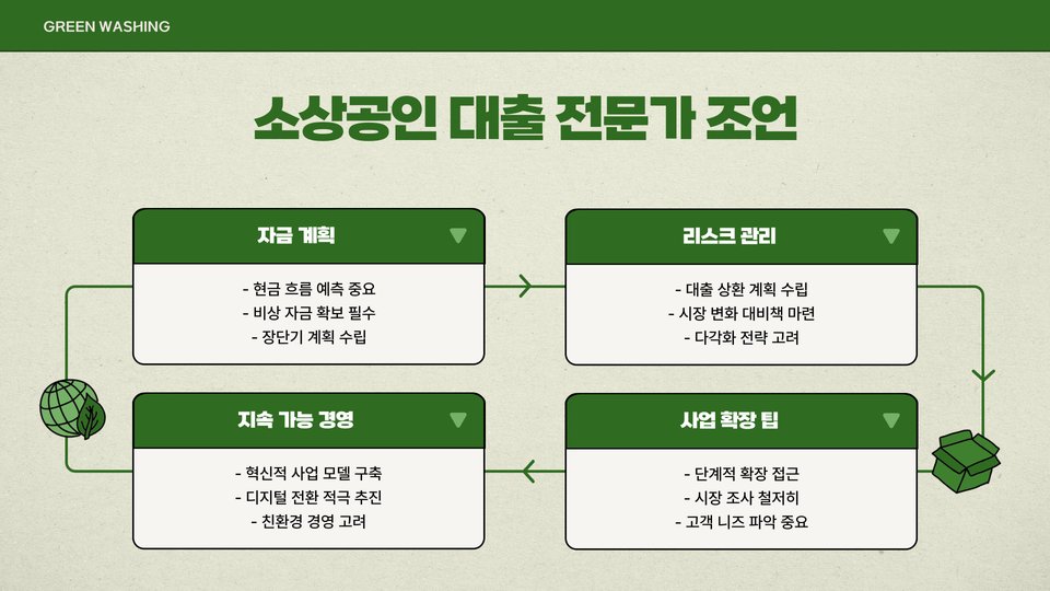 하지만 대출을 받기 전에는 반드시 위험 요소를 충분히 인지해야 합니다. 대출금 미상환 시 발생하는 이자와 본래 대출 금액의 부담은 사업 운영에 심각한 영향을 미칠 수 있습니다. 따라서 실제로 필요로 하는 자금의 규모를 잘 분석하고, 계획적인 상환 전략을 수립하는 것이 무엇보다 중요합니다.