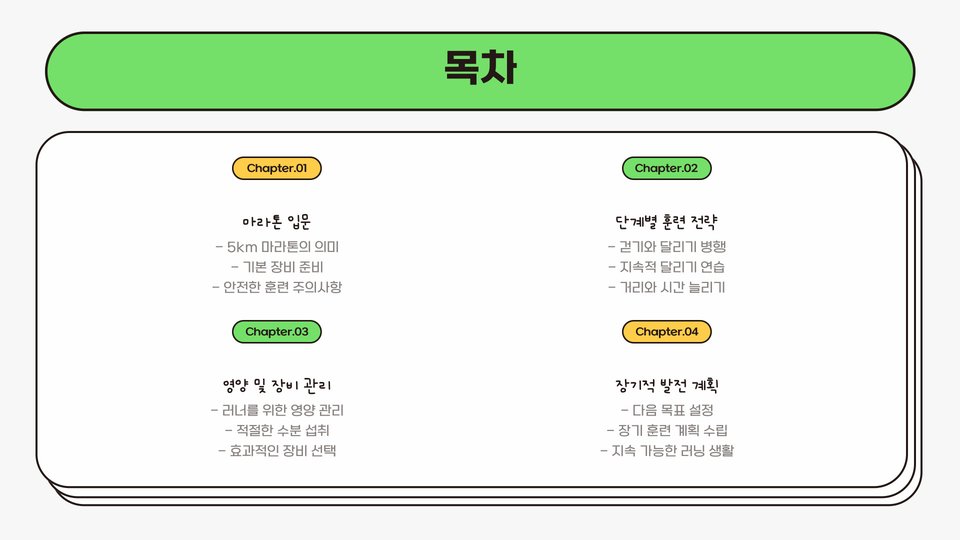 5키로 마라톤 훈련은 체계적이고 지속적인 노력을 요구합니다. 단계별 전략을 통해 목표를 이루고, 건강한 라이프스타일을 유지하세요. 각자의 속도와 체형에 맞춰 훈련을 조절하는 것이 가장 중요하다는 점을 잊지 마세요. 성공적인 5키로 마라톤 완주를 위해 당신의 훈련 여정을 시작하세요!