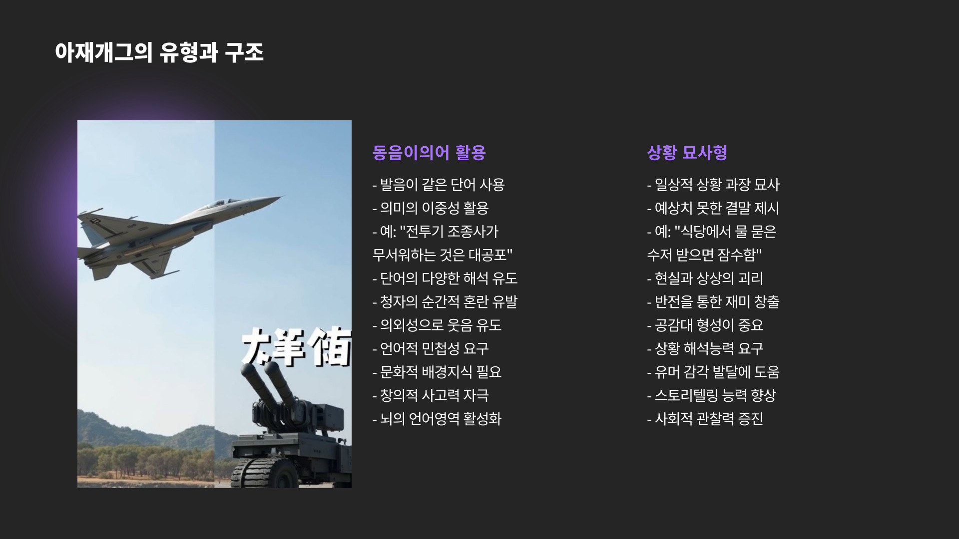 - 아재개그는 간단하지만 깊이 있는 유머를 제공합니다.