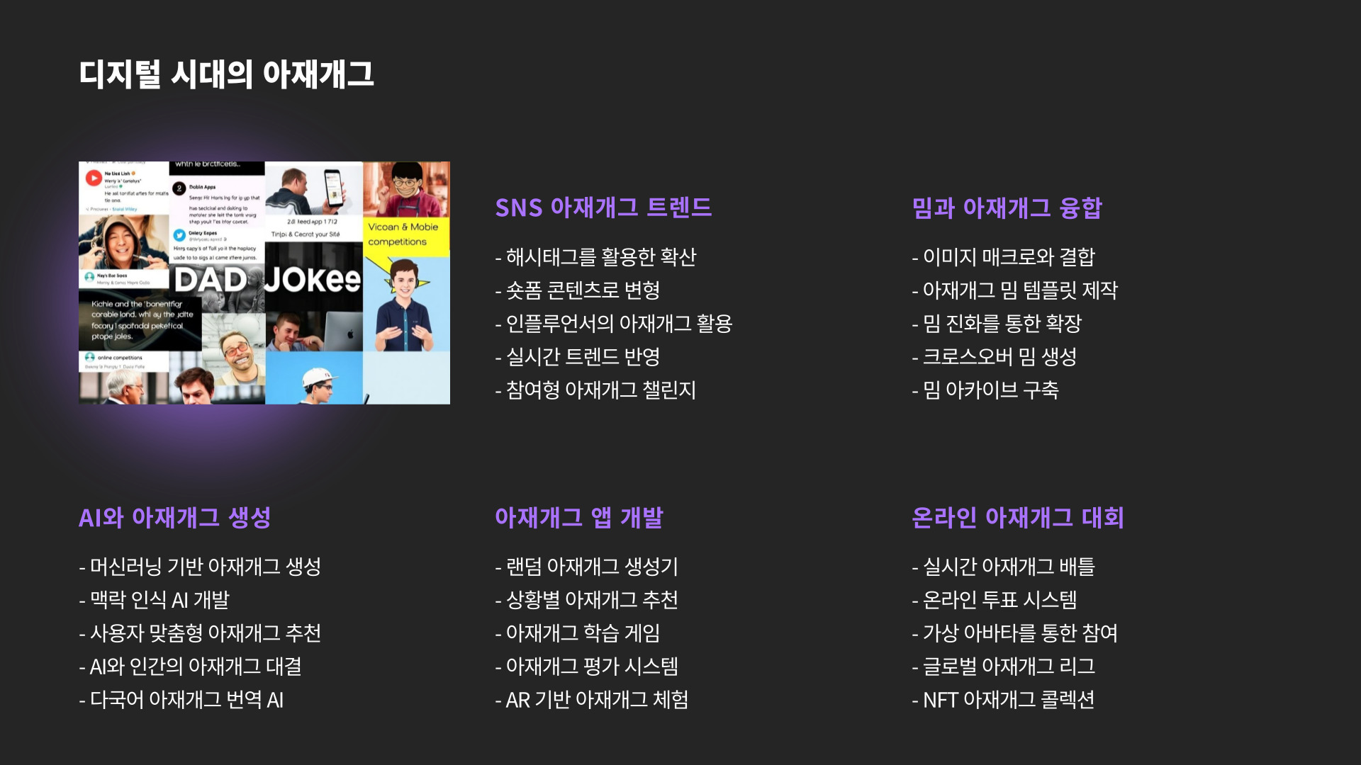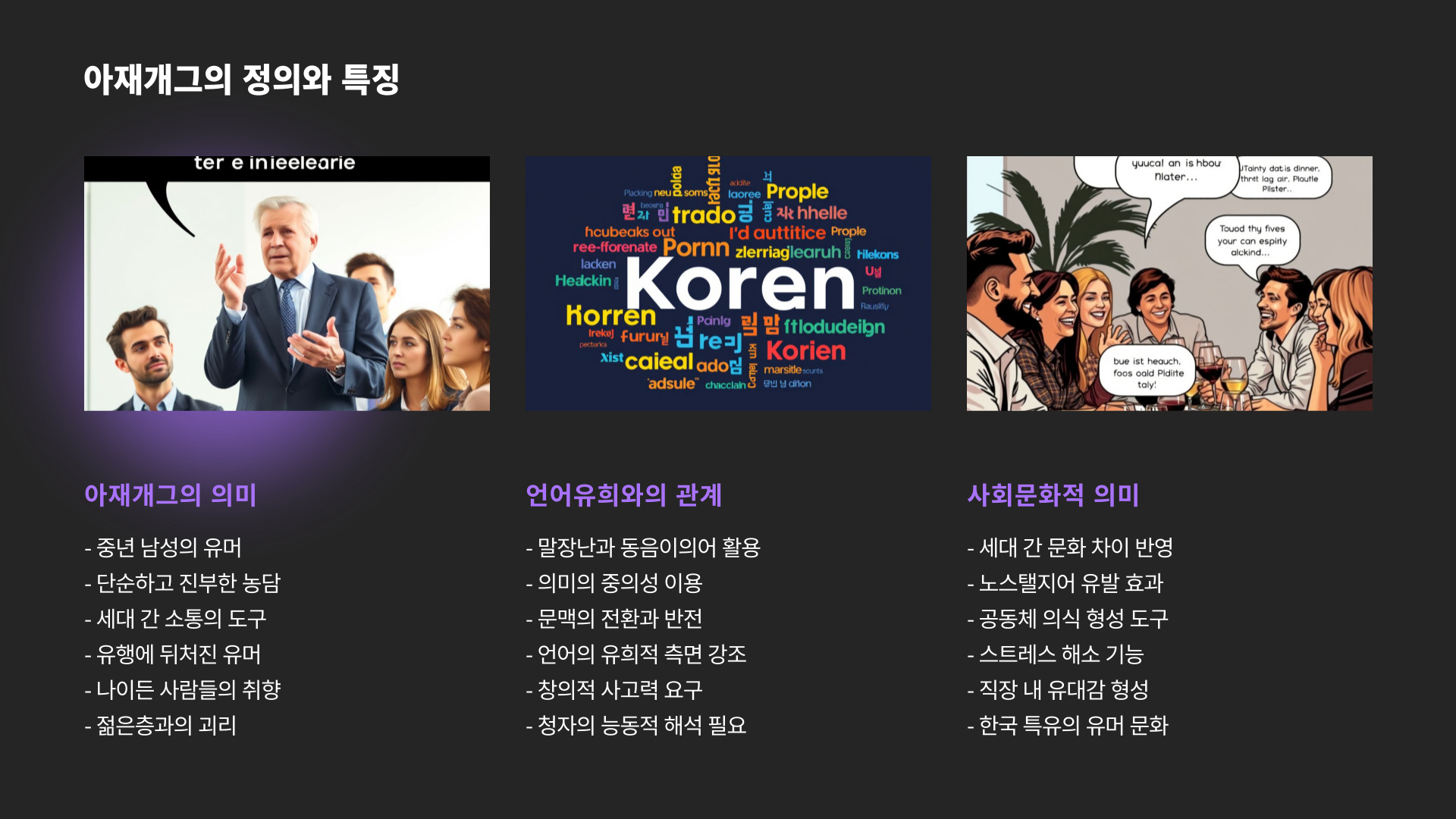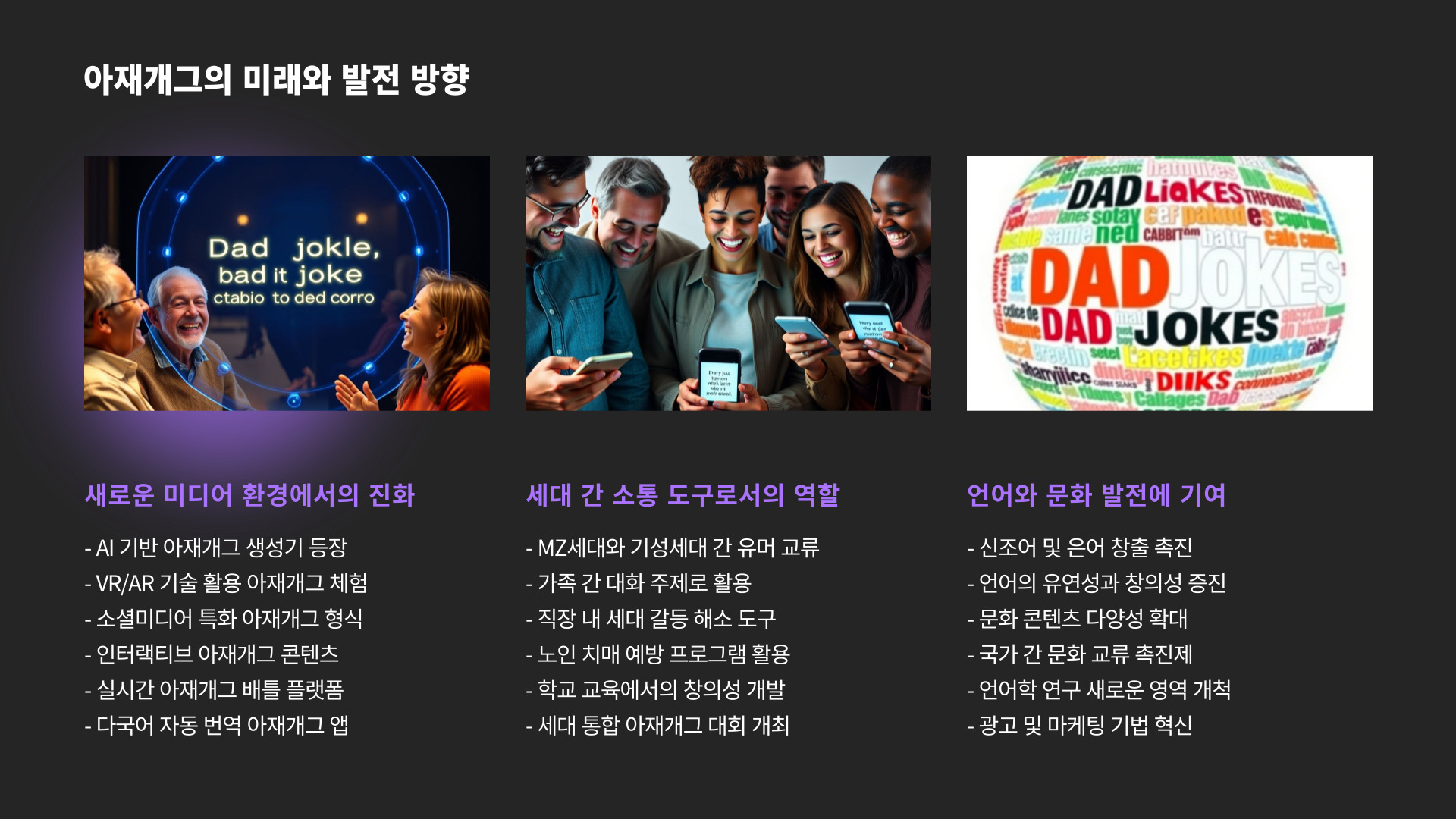 - 아재개그는 단순한 유머를 넘어서 사회적 연결을 형성한다.
