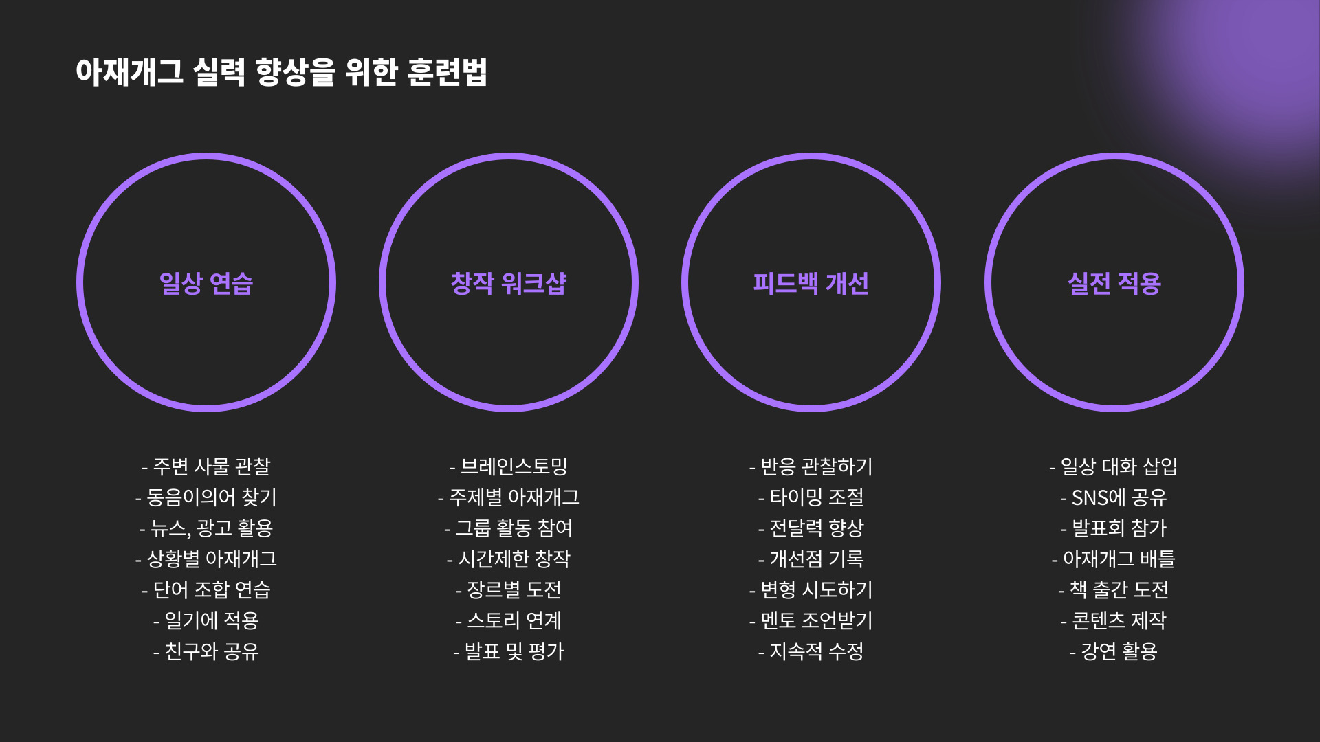 아재개그를 즐기는 데 있어 몇 가지 팁을 소개합니다: