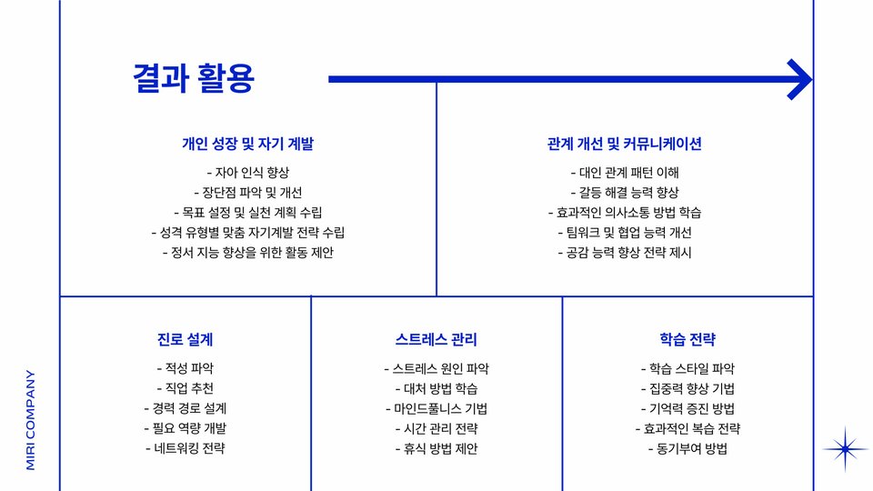- 결과를 바탕으로 자기계발에 활용할 수 있습니다.