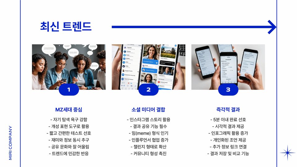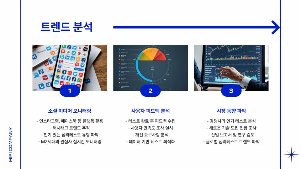 - 최신 트렌드는 AI와 빅데이터 활용으로 개인화된 테스트를 제공합니다.