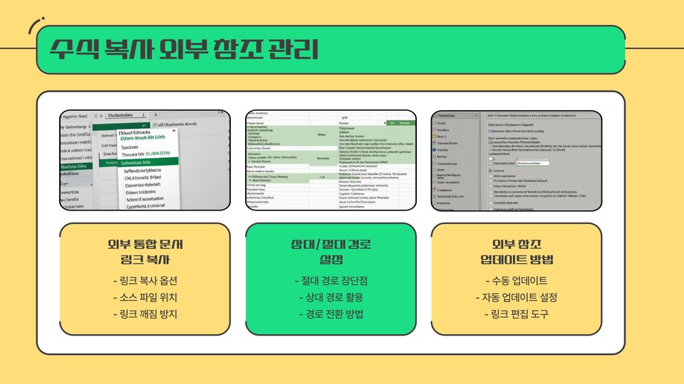 - 특정 셀 참조: 다른 시트의 셀을 참조하는 수식을 통해 복잡한 작업을 간단하게 처리할 수 있습니다.