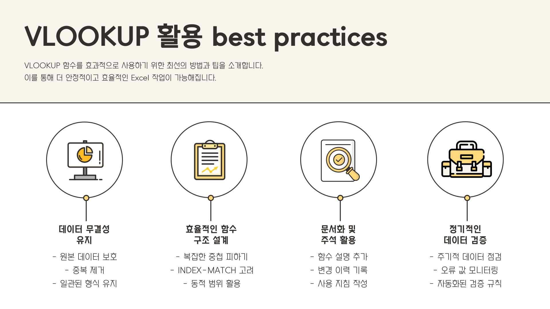 • VLOOKUP의 기본 구문을 이해하고 활용하라.