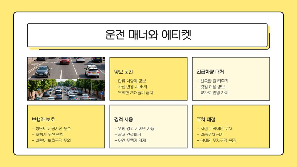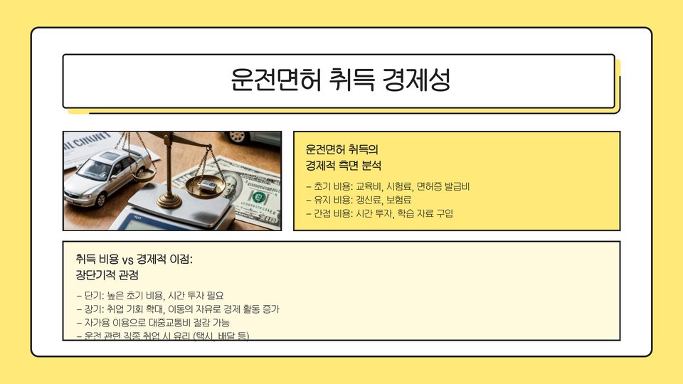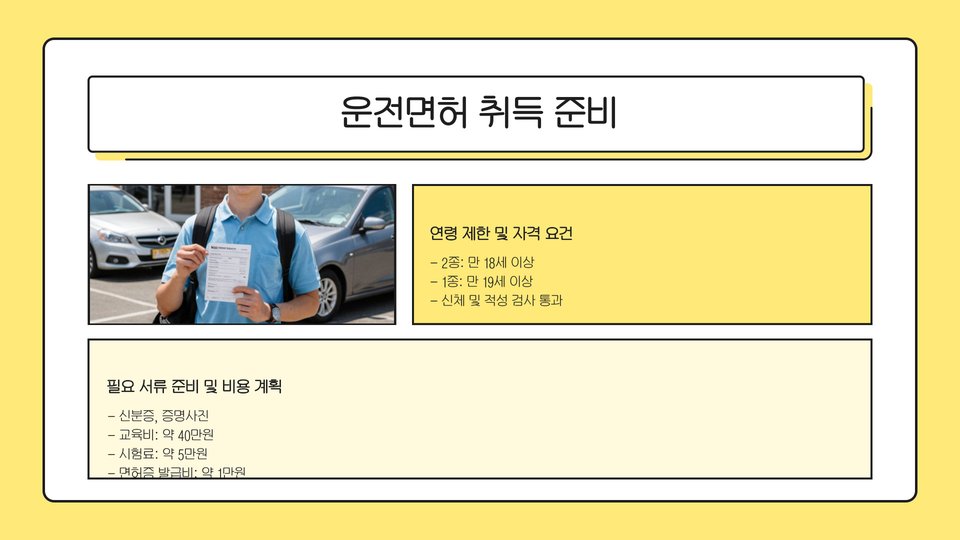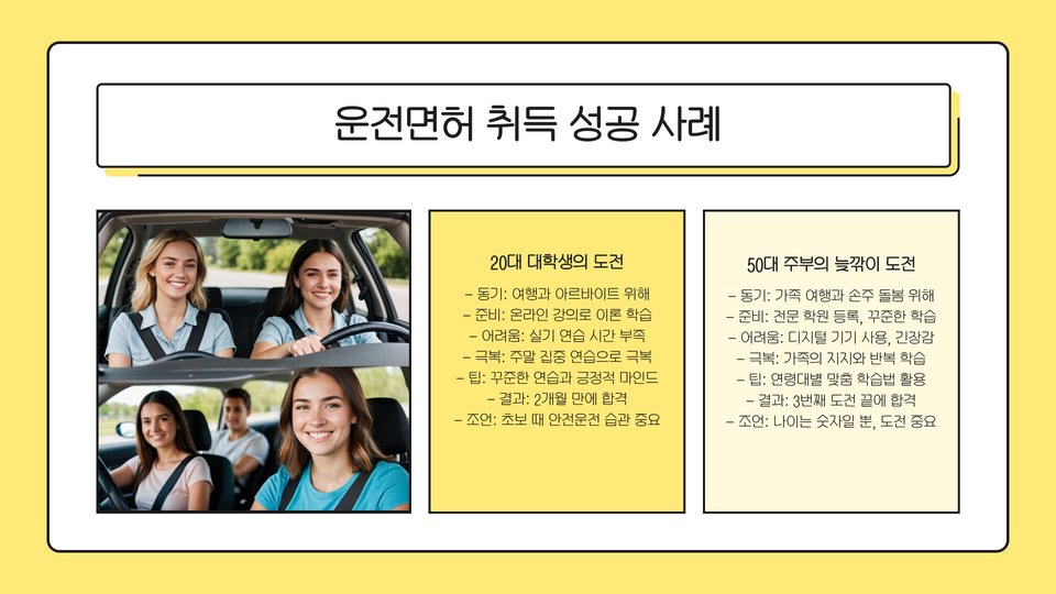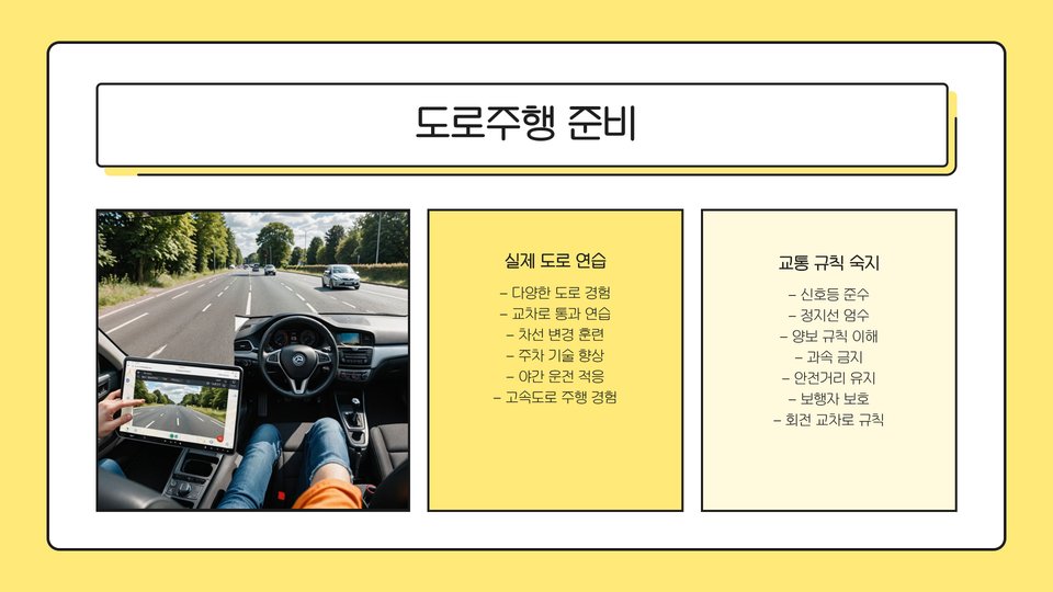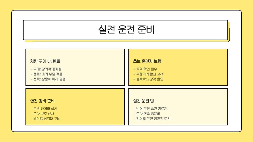 - 운전면허 취득 후: 안전 운전 및 차량 점검 중요