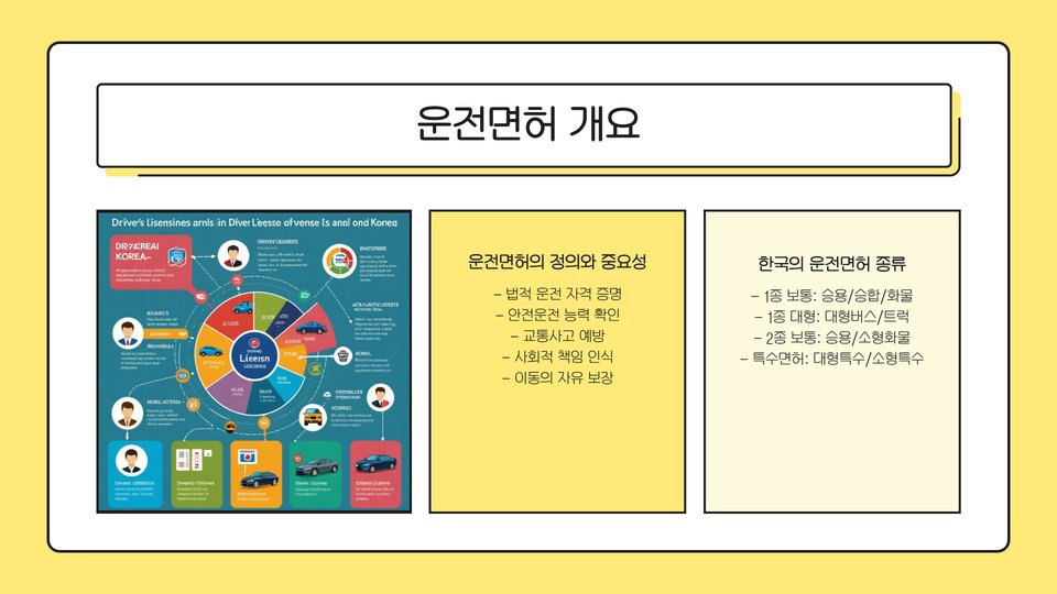 - 운전면허는 안전한 운전을 위한 필수 자격증입니다.