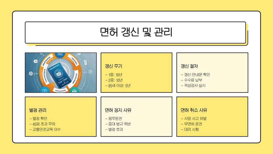 - 면허 취득 후에는 법규 준수와 지속적인 교육이 필요합니다.