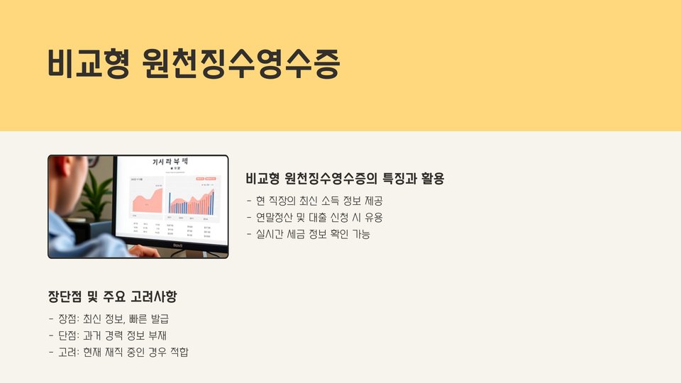 | 비교형 원천징수영수증 | 여러 소득원을 가진 개인 | 소득 종합 관리 용이 |