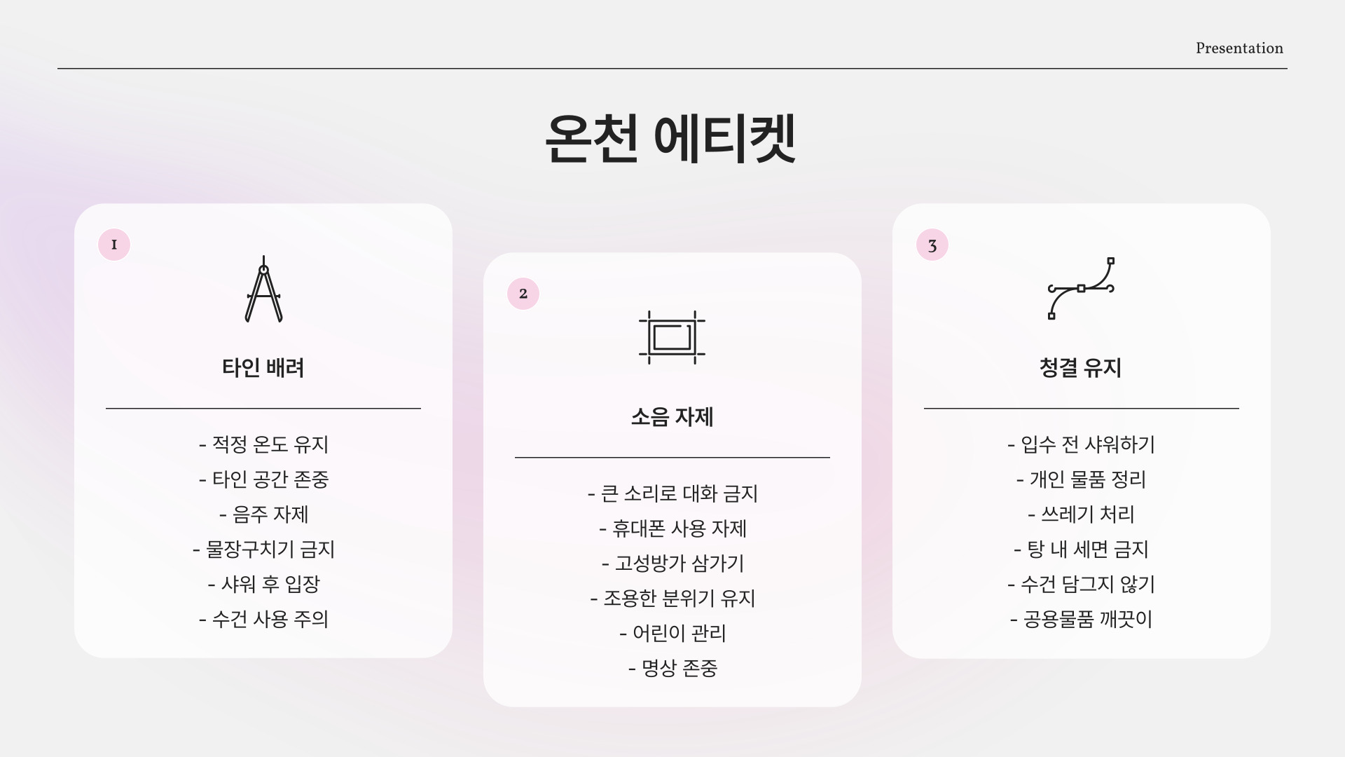 - 다른 이용객과의 배려로 쾌적한 환경 조성