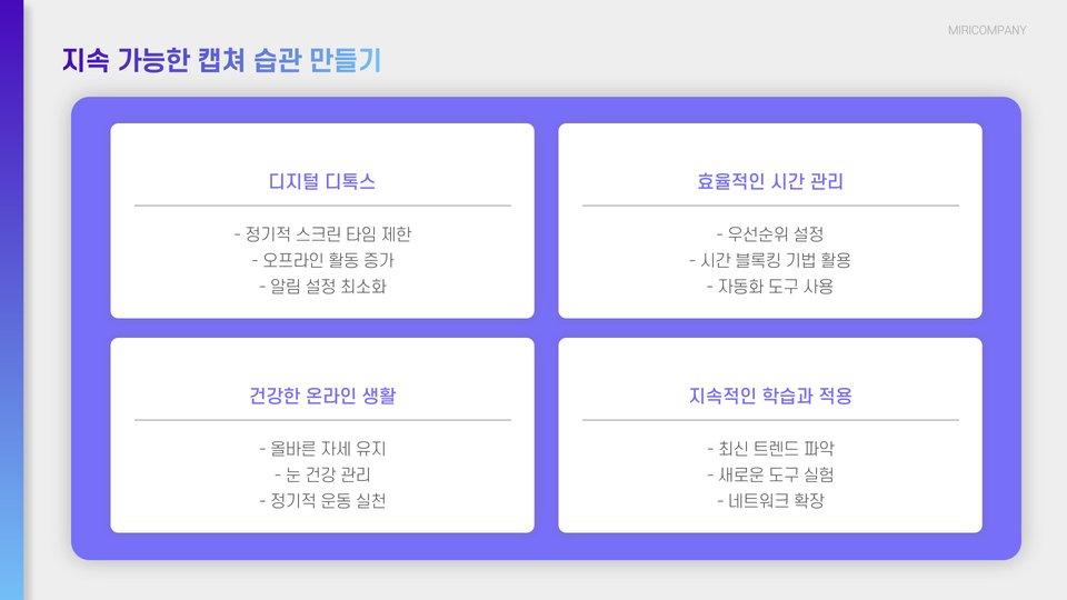 마지막으로, 주기적인 점검을 통해 여러분의 스토리 캡쳐 방식을 계속해서 개선할 수 있습니다. 사용하지 않는 방법은 과감히 버리고, 새로운 트렌드를 반영한 스토리 캡쳐 방법을 도입하면 지속적으로 더 효율적으로 콘텐츠를 제작할 수 있습니다.