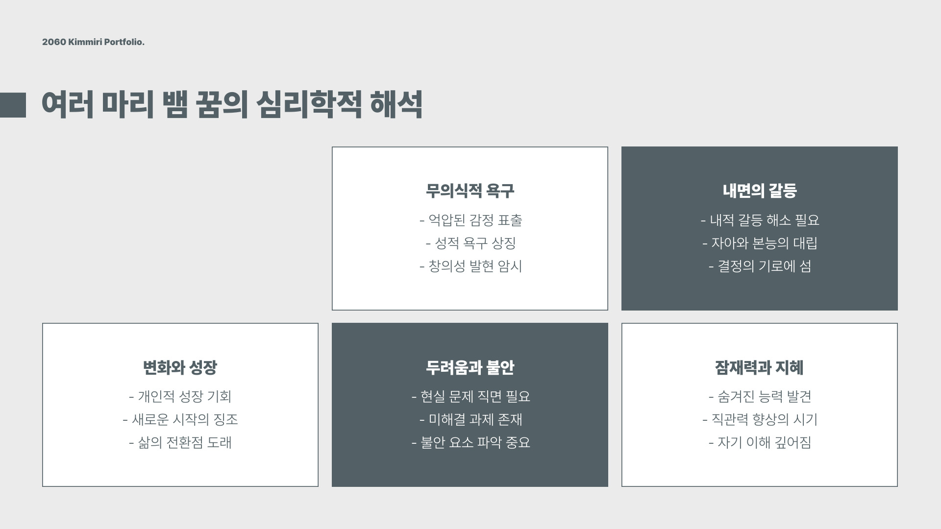 - 여러 마리 뱀 = 복잡한 심리적 상태