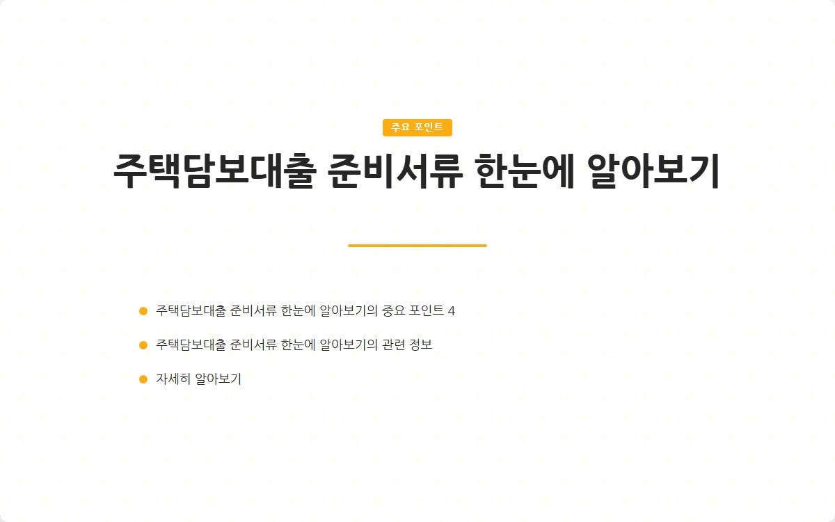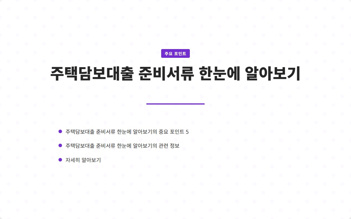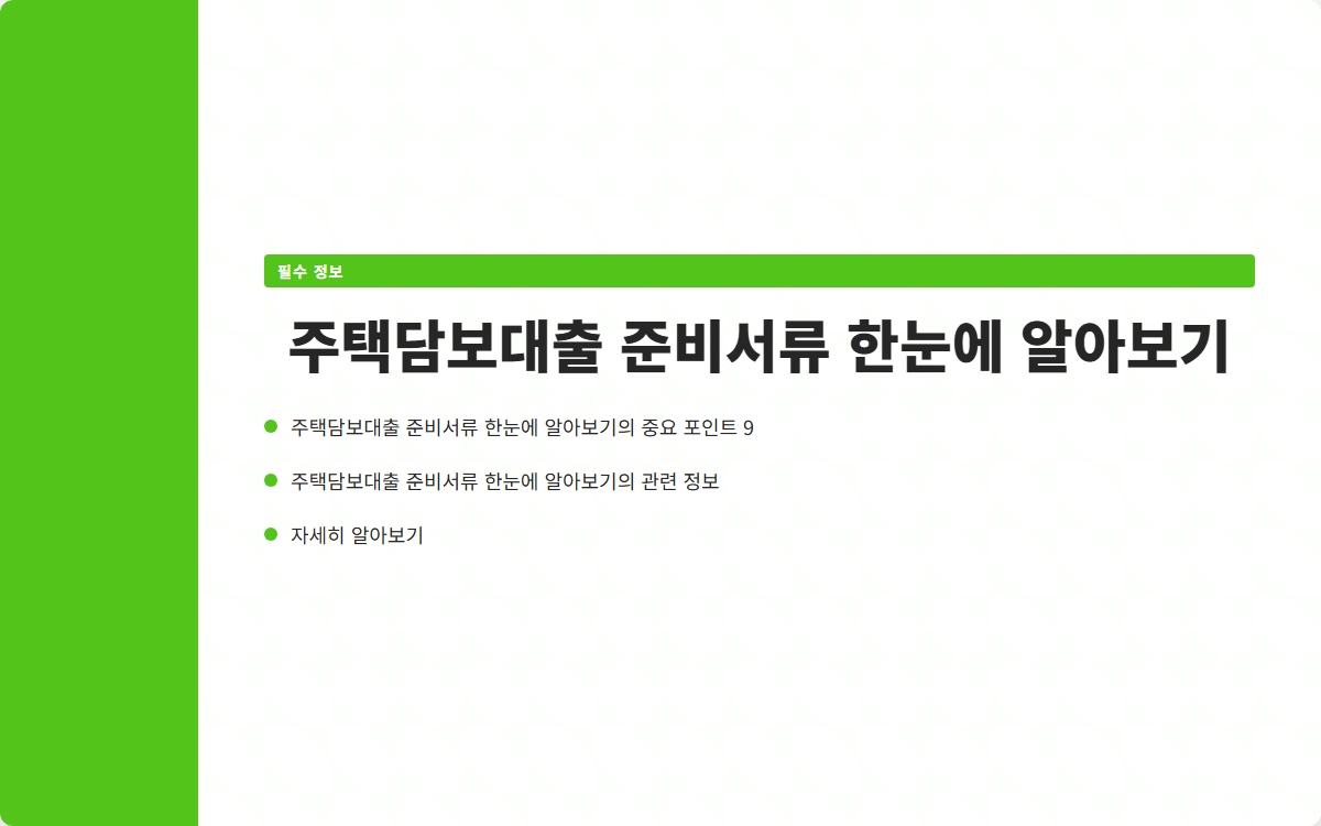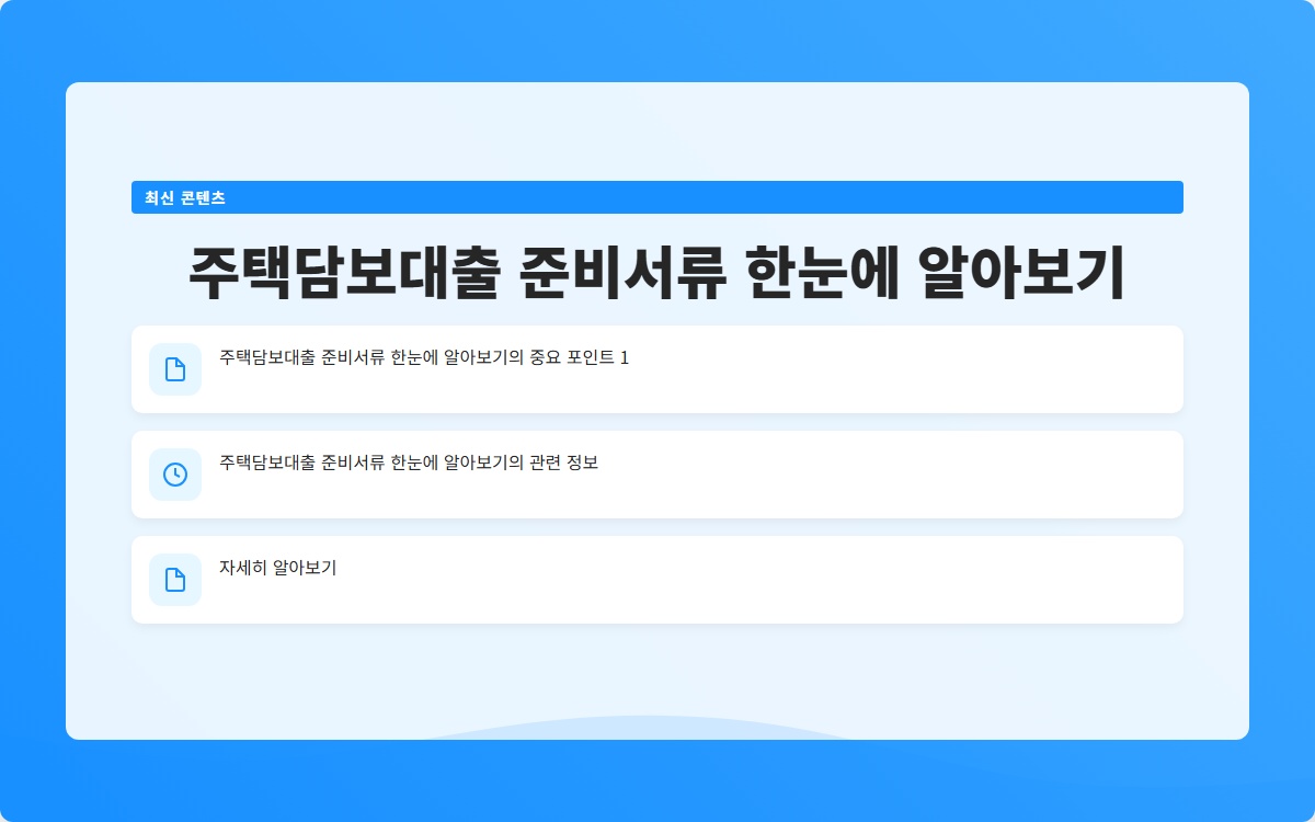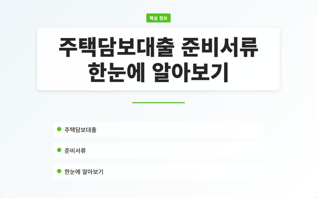 주택담보대출을 위한 서류 준비는 간단해 보일 수 있지만, 각 서류의 중요성을 잘 이해하고 준비하는 것이 핵심입니다. 상담 시 필요한 모든 서류를 한 번에 준비하고, 각 서류의 유효성을 검토하면 대출 승인 가능성을 높일 수 있습니다. 이를 통해 원하는 주택을 구매하는 데 한 걸음 더 나아갈 수 있기를 바랍니다.