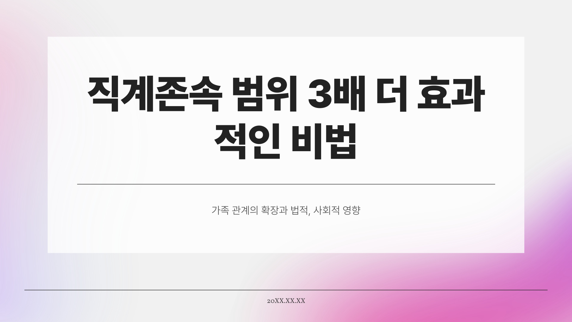 직계존속 범위를 3배 더 효과적으로 활용하는 방법은 무엇보다도 명확한 계획과 소통입니다. 이를 통해 가족 간의 갈등을 예방하고, 상속 과정을 원활하게 진행할 수 있습니다. 직계존속 범위를 이해하고, 적극적으로 활용하는 것이 중요합니다.