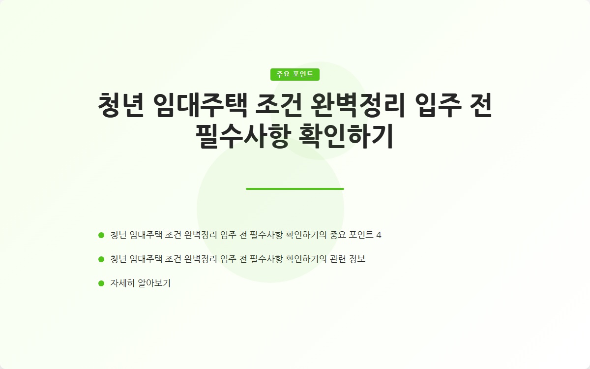 청년 임대주택에 입주하기 전에는 몇 가지 필수 사항을 확인해야 합니다. 이 사항들을 미리 점검하여 원활한 입주를 준비하는 것이 중요합니다.