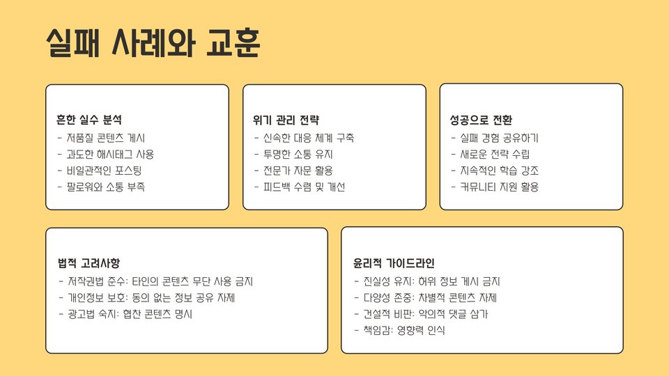 | 일정한 주기 유지 | 정기적인 콘텐츠 업로드로 팔로워의 충성도 높이기 |