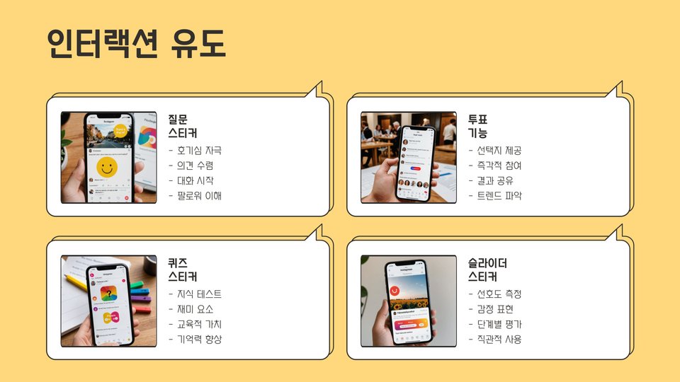 인스타 스토리는 단순히 콘텐츠를 소비하는 플랫폼이 아닙니다. 팔로워들과의 상호작용이 중요합니다. 예를 들어, 질문 스티커나 투표 기능을 사용하여 팔로워들의 의견을 물어보는 것이죠. 이렇게 하면 팔로워들은 더 많은 참여를 하게 되고, 이는 자연스럽게 더 많은 관심과 공유로 이어질 수 있습니다. 상호작용이 활발한 스토리는 그 자체로도 재미를 주기 때문에, 사람들은 자주 방문하게 됩니다.
