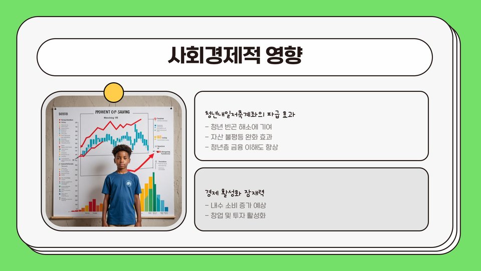 또한, 이 계좌는 저축을 통해 자산을 모은 청년들이 향후 주택 구매나 다른 큰 재정적 결정을 내리는데 필요한 기본적인 재정력을 키울 수 있도록 도와줍니다. 이는 청년들이 경제적 자립을 이루는 데 큰 도움이 되며, 더 나아가 금전적 안정성을 통해 삶의 질을 향상시킬 수 있는 기회를 제공합니다.