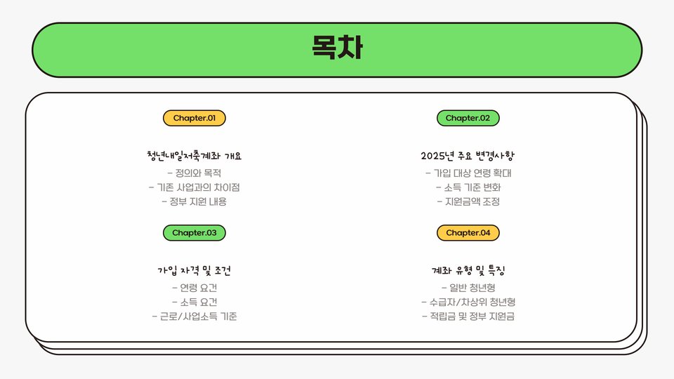 - 청년내일저축계좌는 청년의 재정적 자립을 지원하는 정책입니다.