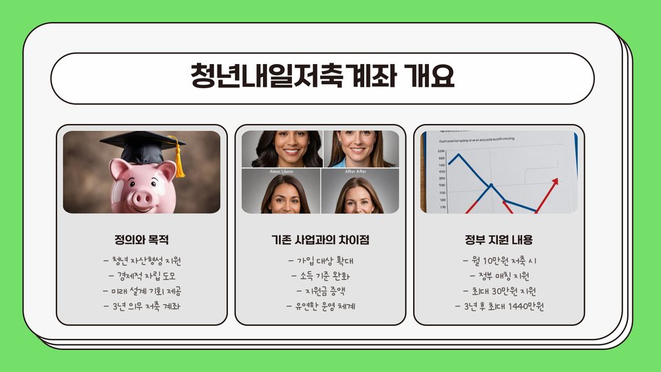 청년내일저축계좌는 2020년에 도입된 정부의 정책으로, 청년들이 일정 금액을 저축하면 정부가 추가로 지원금을 제공하는 구조입니다. 주로 만 19세부터 34세까지의 청년층이 대상이며, 저축금액과 정부 지원금의 비율이 중요한 요소입니다. 이 계좌의 목표는 청년들이 자산을 형성하고 경제적 자립을 이루도록 돕는 것입니다.