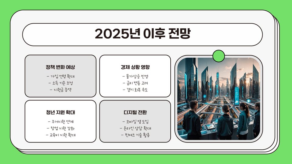 2025년 이후에도 청년내일저축계좌는 더욱 중요한 금융 상품이 될 것으로 보입니다. 경제적인 불확실성이 높은 가운데, 안정된 자산 형성을 원하는 청년들에게 이 계좌는 큰 도움이 될 것입니다. 정부에서도 이 프로그램을 통하여 청년들의 금융 환경을 개선하고 경제적 자립을 지원하려는 노력을 지속적으로 기울일 것입니다.