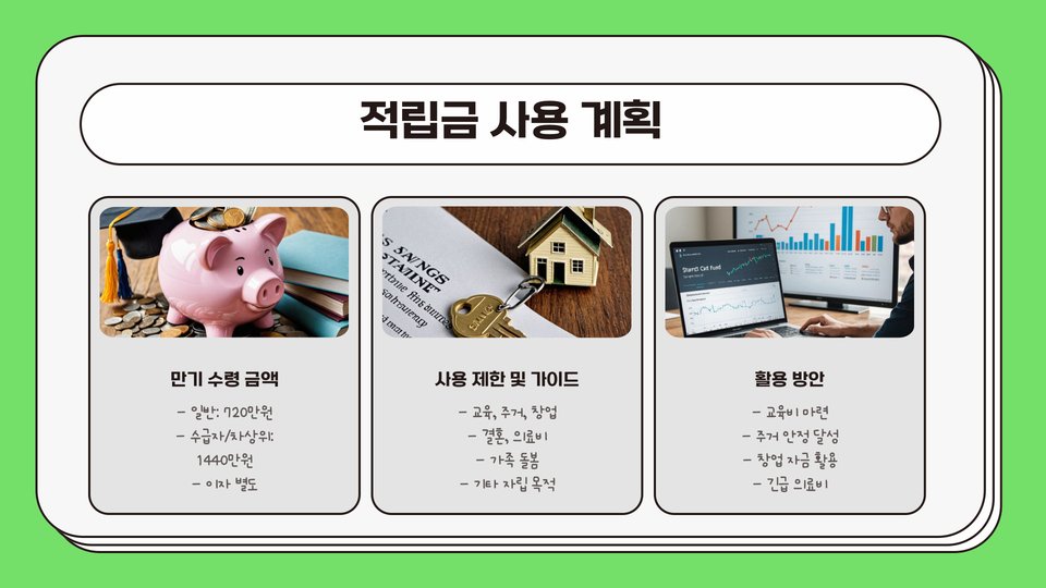 - 정기적인 저축 습관과 목표 설정이 중요합니다.
