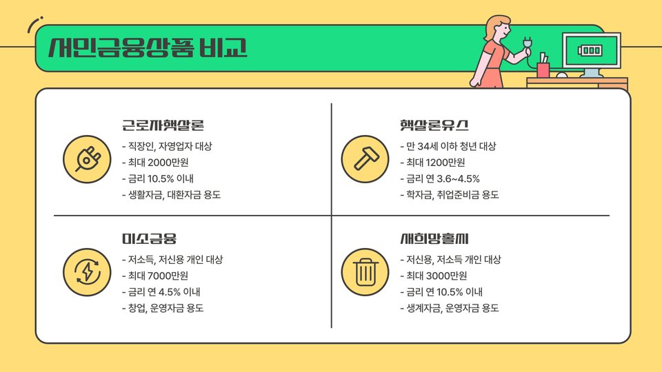 햇살론15는 정부에서 지원하는 저소득층을 위한 대출 프로그램으로, 특히 소상공인이나 자영업자에게 큰 도움이 됩니다. 예를 들어, 월세나 운영 자금을 필요로 하는 자영업자에게 적합합니다. 이 대출은 금리가 낮고, 상환 기간이 유연하여 경제적 부담을 덜어줍니다.