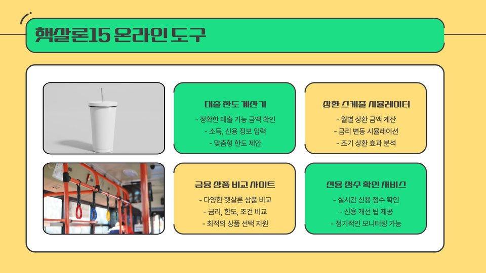 햇살론15를 통해 대출받기 위해서는 일정한 자격 요건을 충족해야 하며, 이에 대한 자세한 사항은 각 금융기관의 홈페이지를 통해 확인할 수 있습니다.